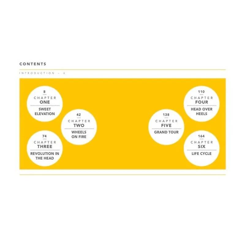 - Organised into six themed chapters exploring different aspects of cycling life and culture
