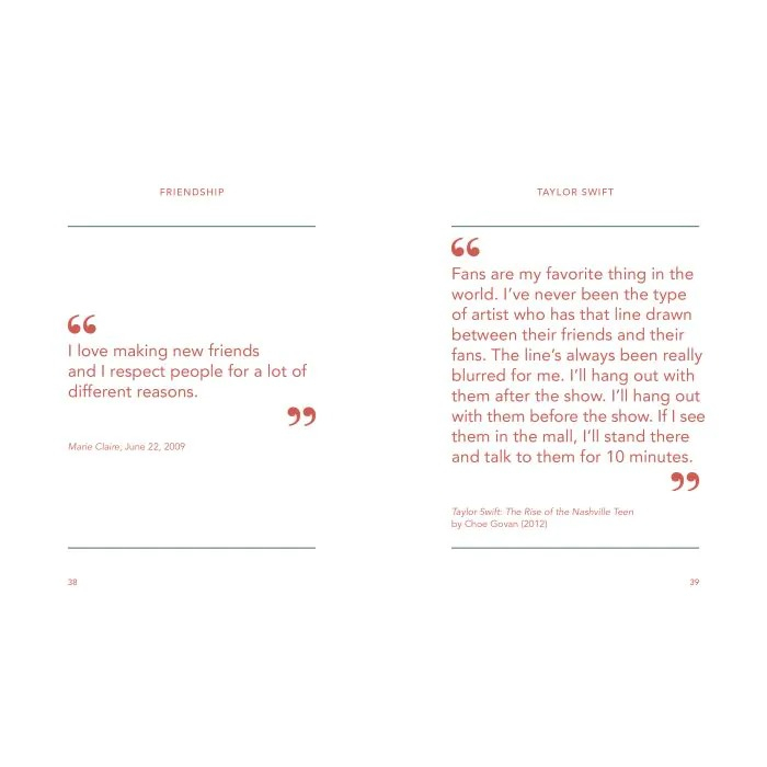 This collection of Taylor's relatable, inspiring and hugely optimistic quotes and lyrics reveals a caring, generous personality who is all about 'the feels' and following your dreams. Sparkling with positivity and feel-good vibes, Taylor is always there to give you the best advice and lift you up when you're down – she's your own personal cheerleader.