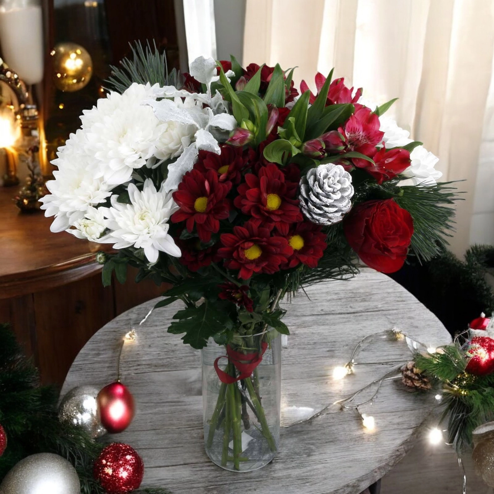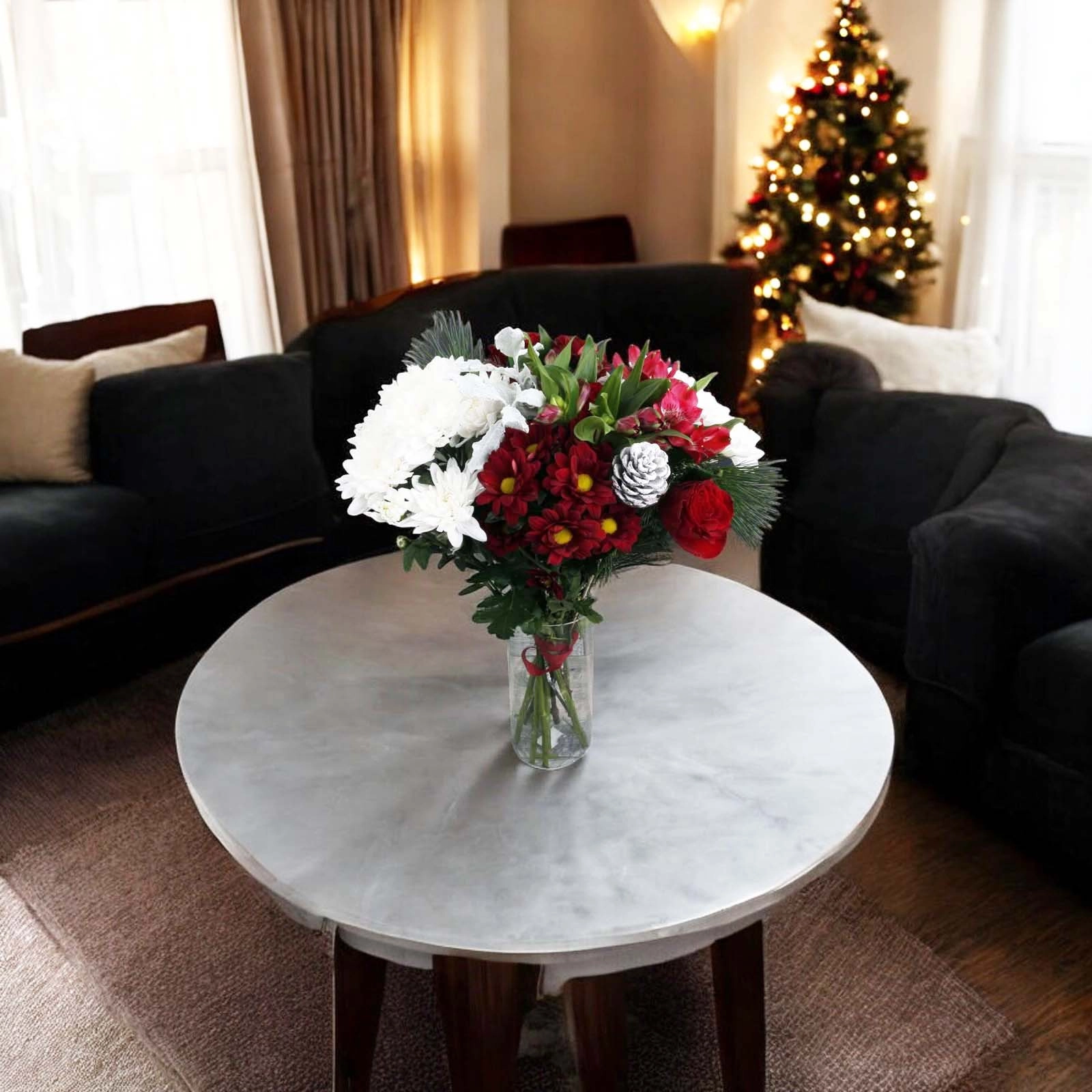 Introducing this radiant and stunning flower arrangement that brings the enchantment of the Christmas season to life.