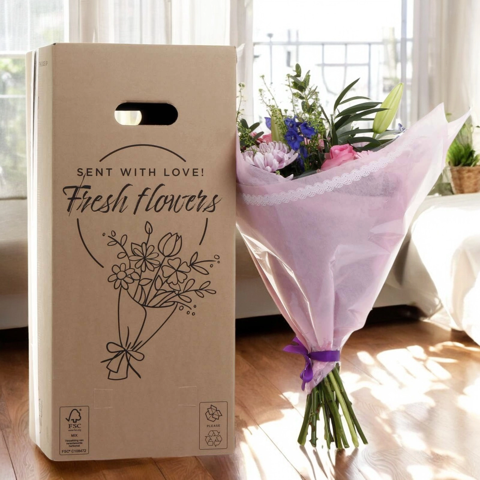 • Our fresh flower bouquets are packed and shipped direct from our Dublin warehouse together with any other gifts and cards ordered.