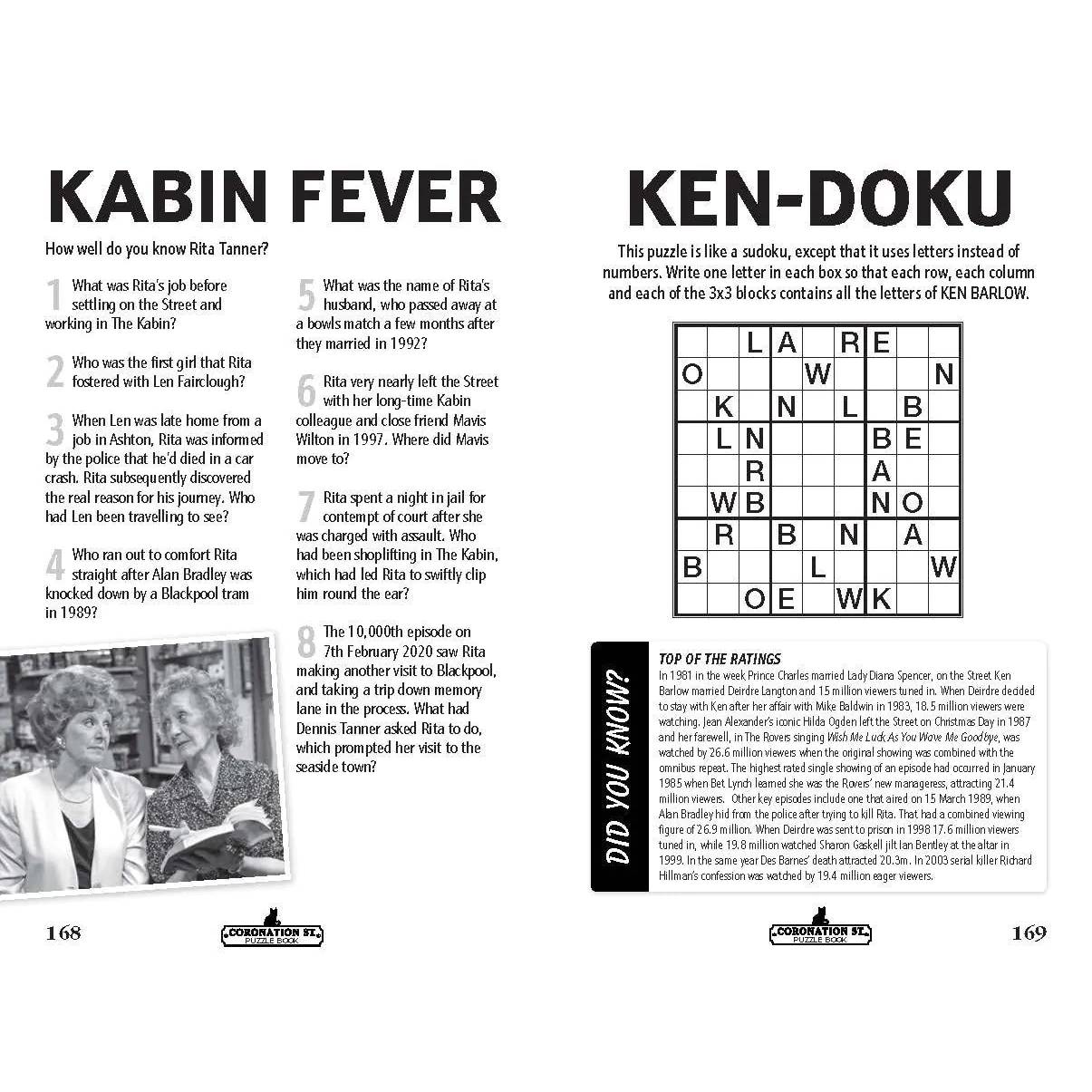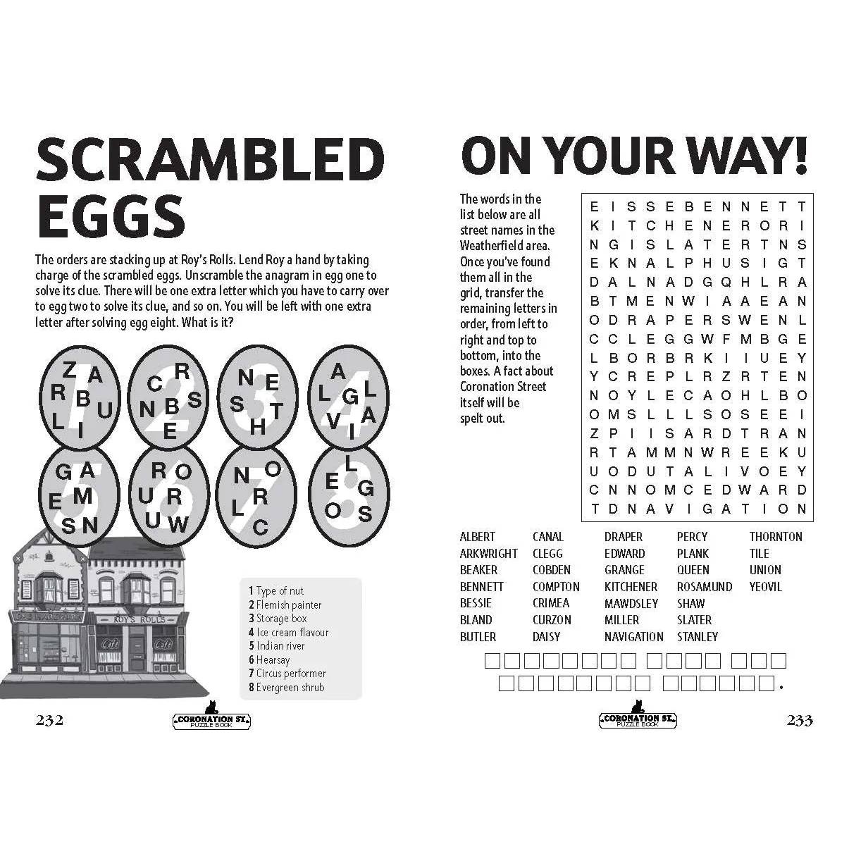 Featuring delightful images from the show, this puzzle book is enjoyable for all levels of difficulty and for every member of the family. Enhanced by fascinating trivia written by Coronation Street author Abigail Kemp, you'll uncover fun facts about legendary feuds, the notorious cat, and quirky details like exactly how many pints are poured weekly in The Rovers, or how many eggs are fried at Roy’s Rolls.