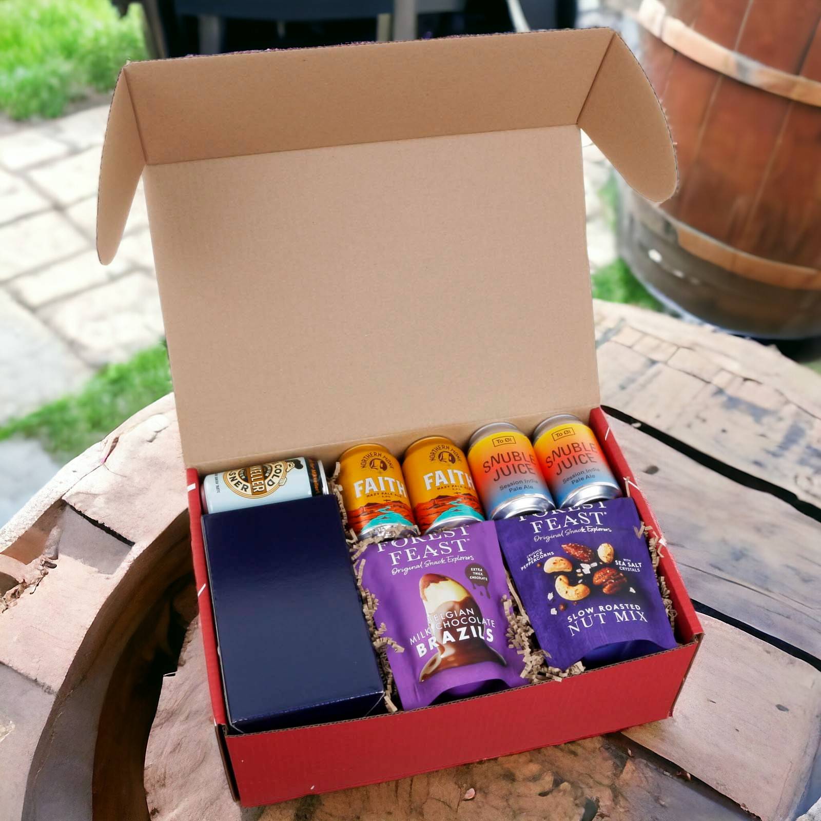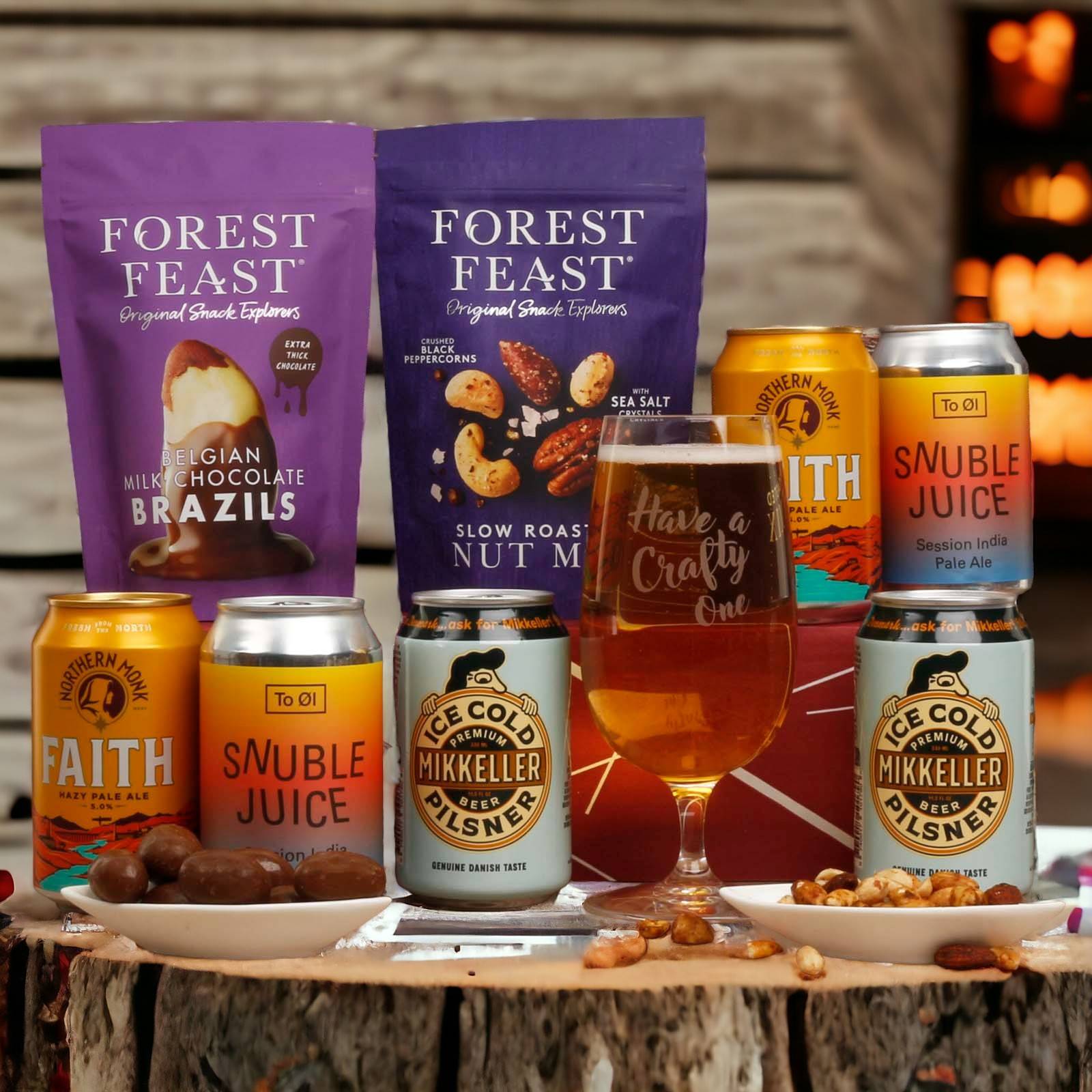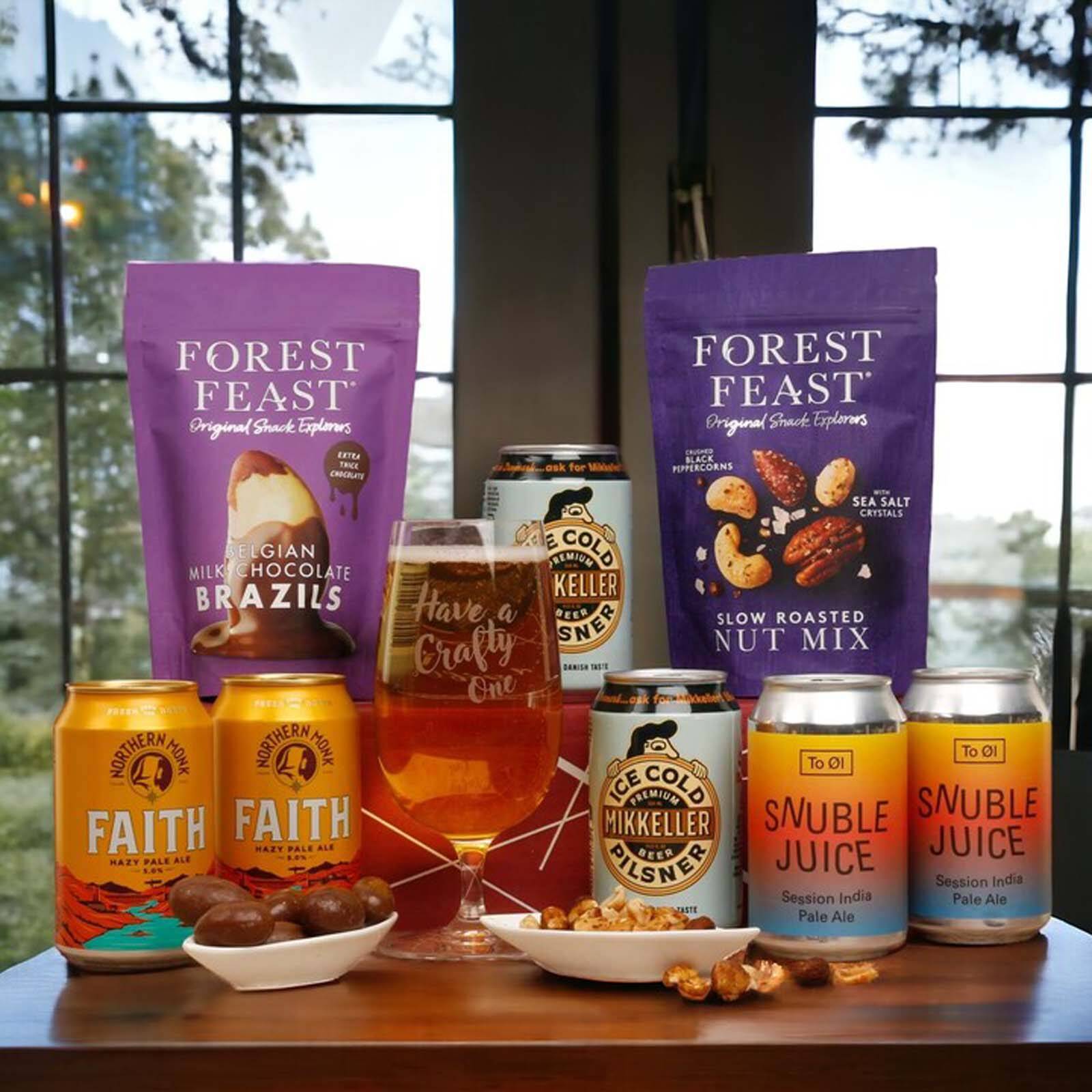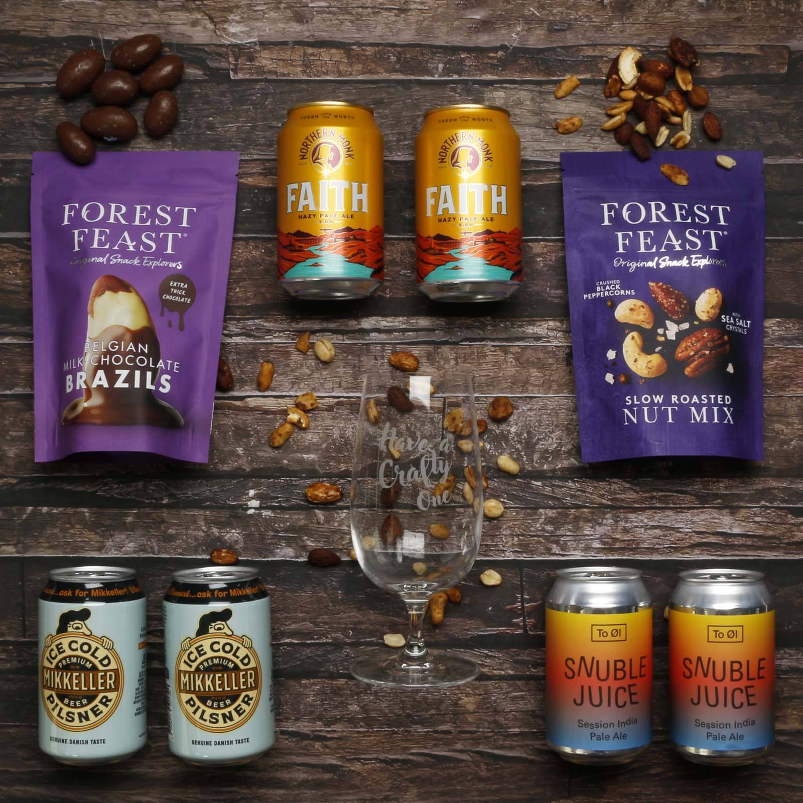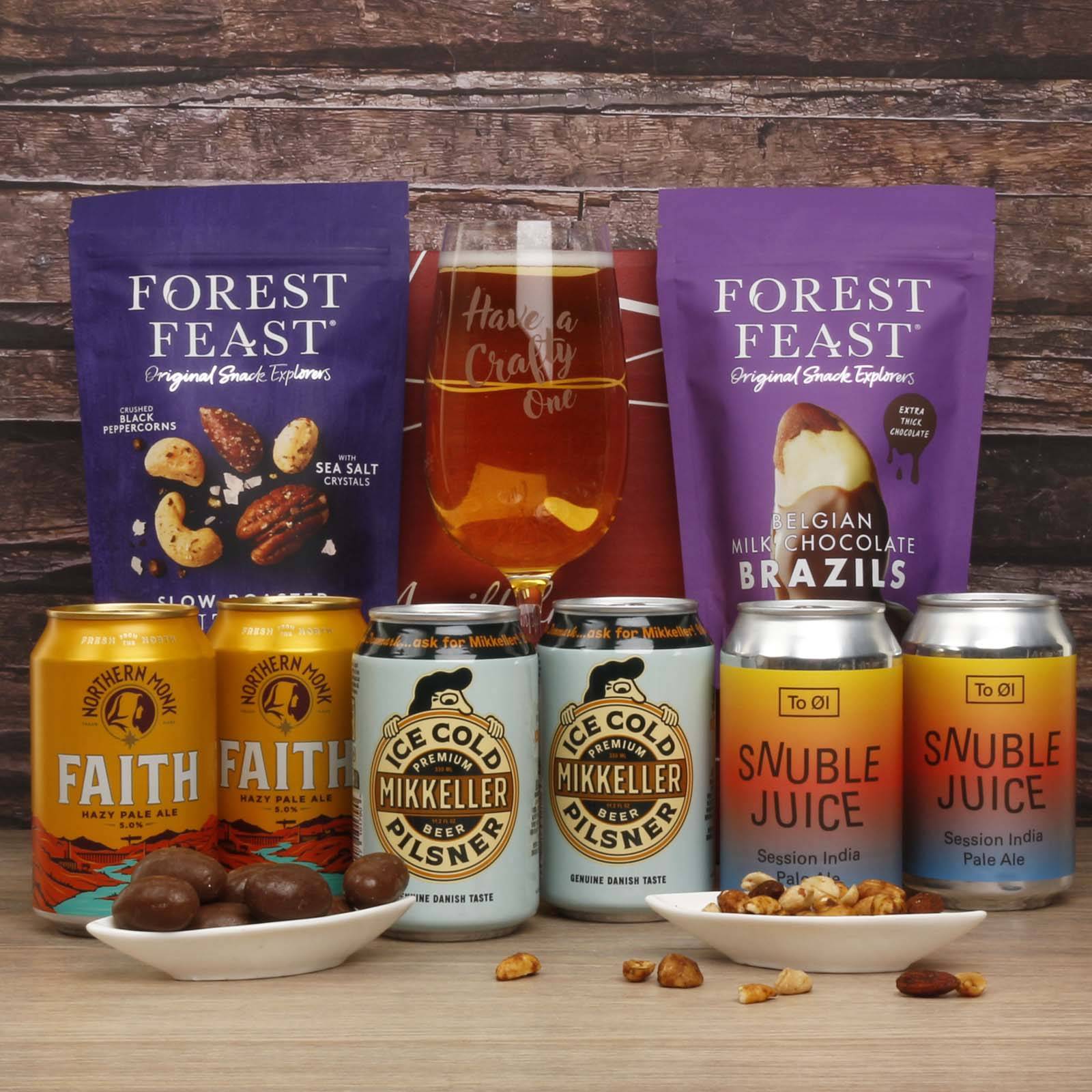 We've included everything in this craft beer hamper for a perfect night in: distinguished beers, tasty snacks and even home entertainment.