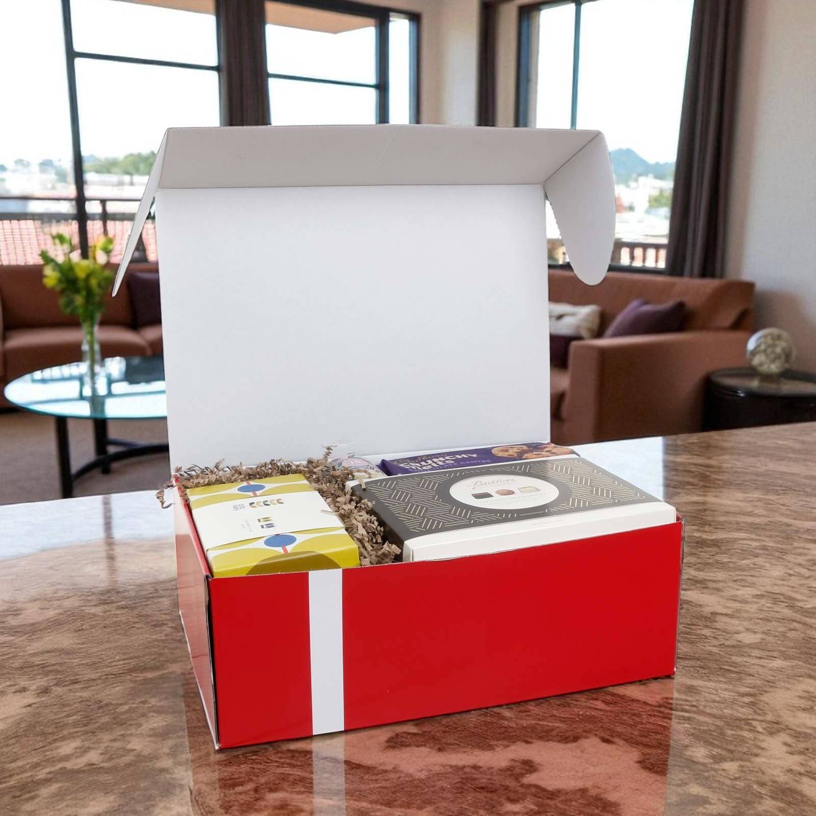 All these items are thoughtfully presented inside our signature red gift box, designed to be both stylish and reusable. The hamper is carefully packed in an outer shipping box to ensure it arrives in perfect condition.