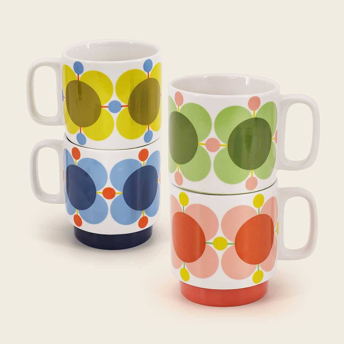 • Tipperary Crystal Orla Kiely Stackable Fifties Flower Set of 4 Mugs