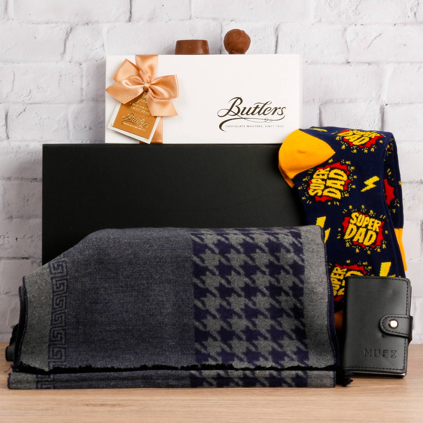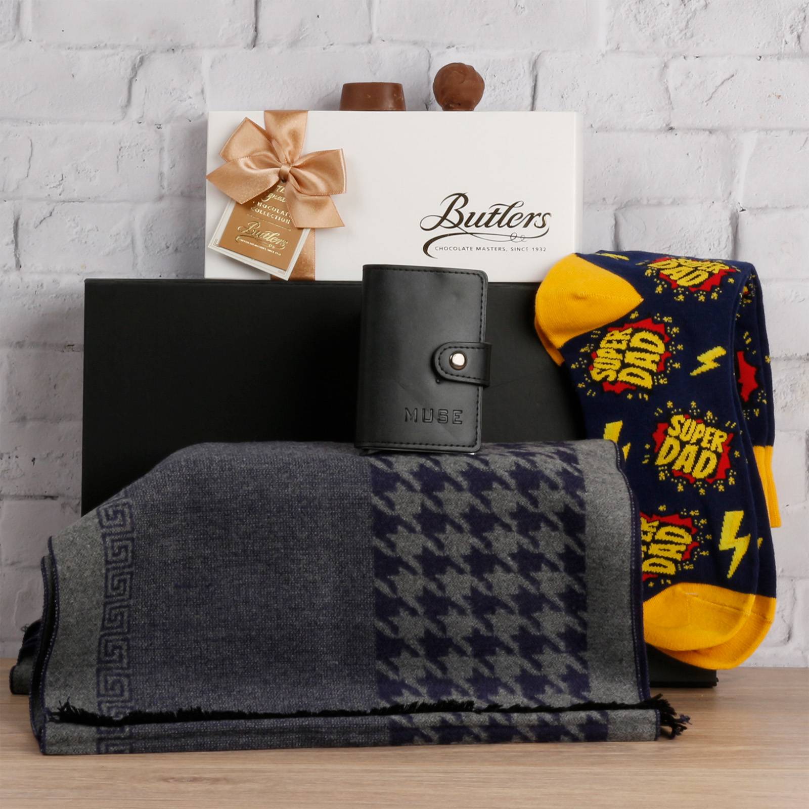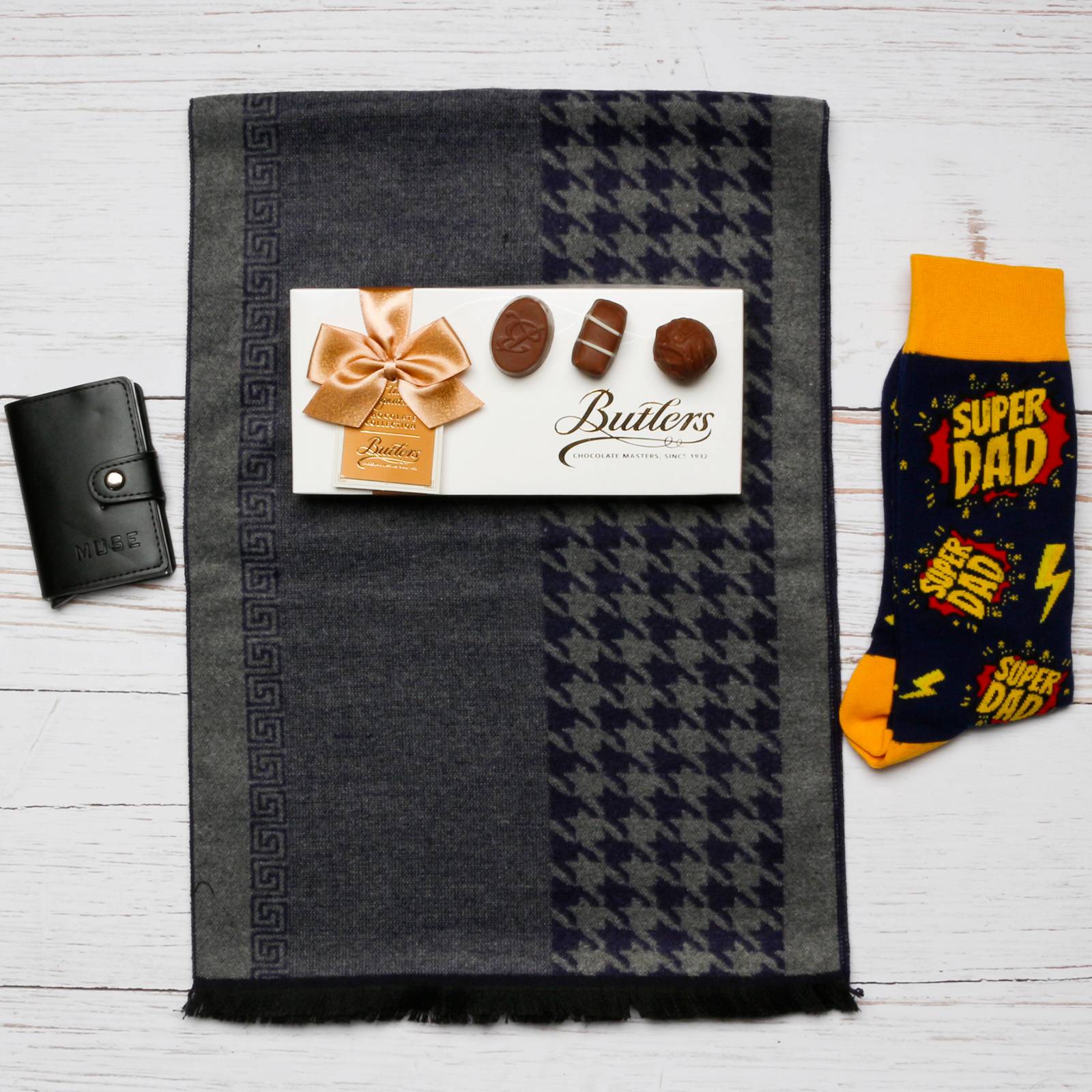 Each item in this dad gift hamper has been carefully selected to ensure the highest quality and satisfaction. From the stylish scarf that adds a touch of elegance to any outfit, to the practical and classy wallet that keeps essentials organized, and the comfortable socks that pamper his feet, this hamper is a truly exceptional gift that your dad will cherish. Including some delicious Butlers Chocolates. Show your appreciation and love for your dad by presenting him with this amazing gift hamper on any special occasion or simply to make his day a little brighter.