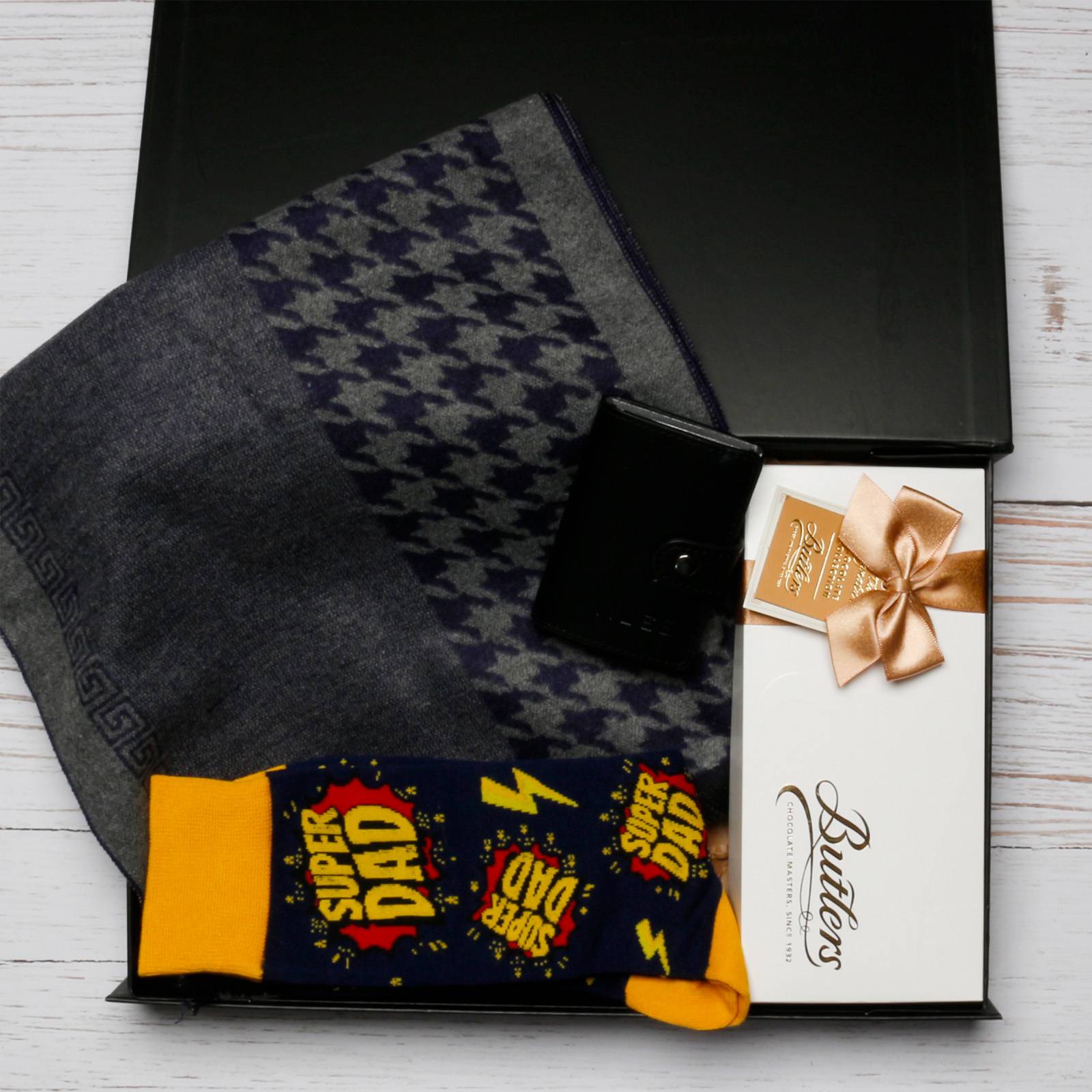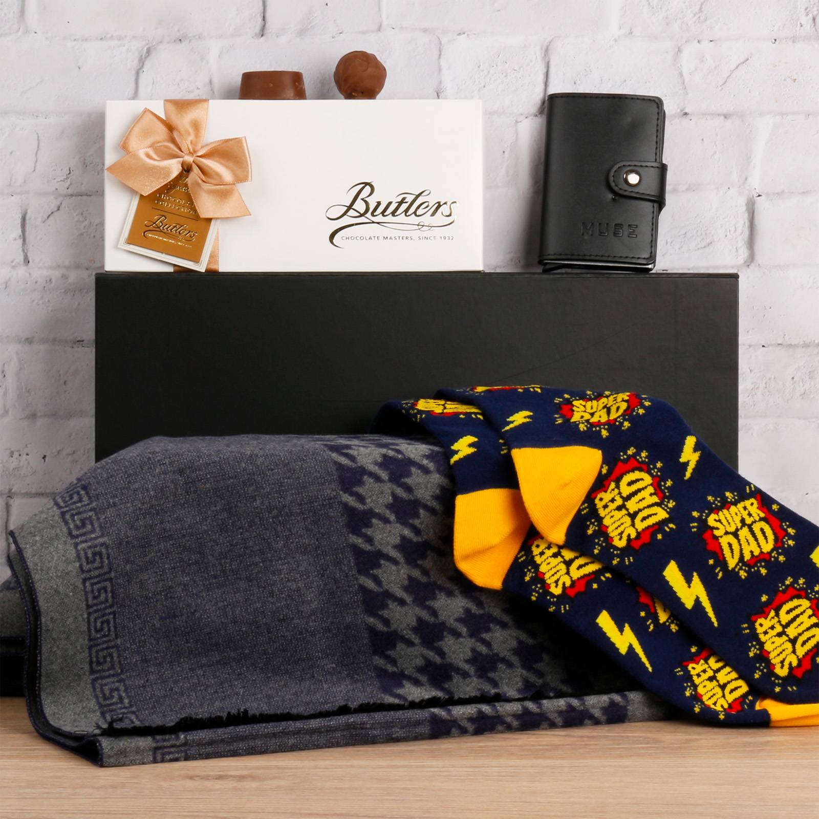 The Super Dad's Luxury Blue Scarf, Wallet, Socks & Chocs Hamper