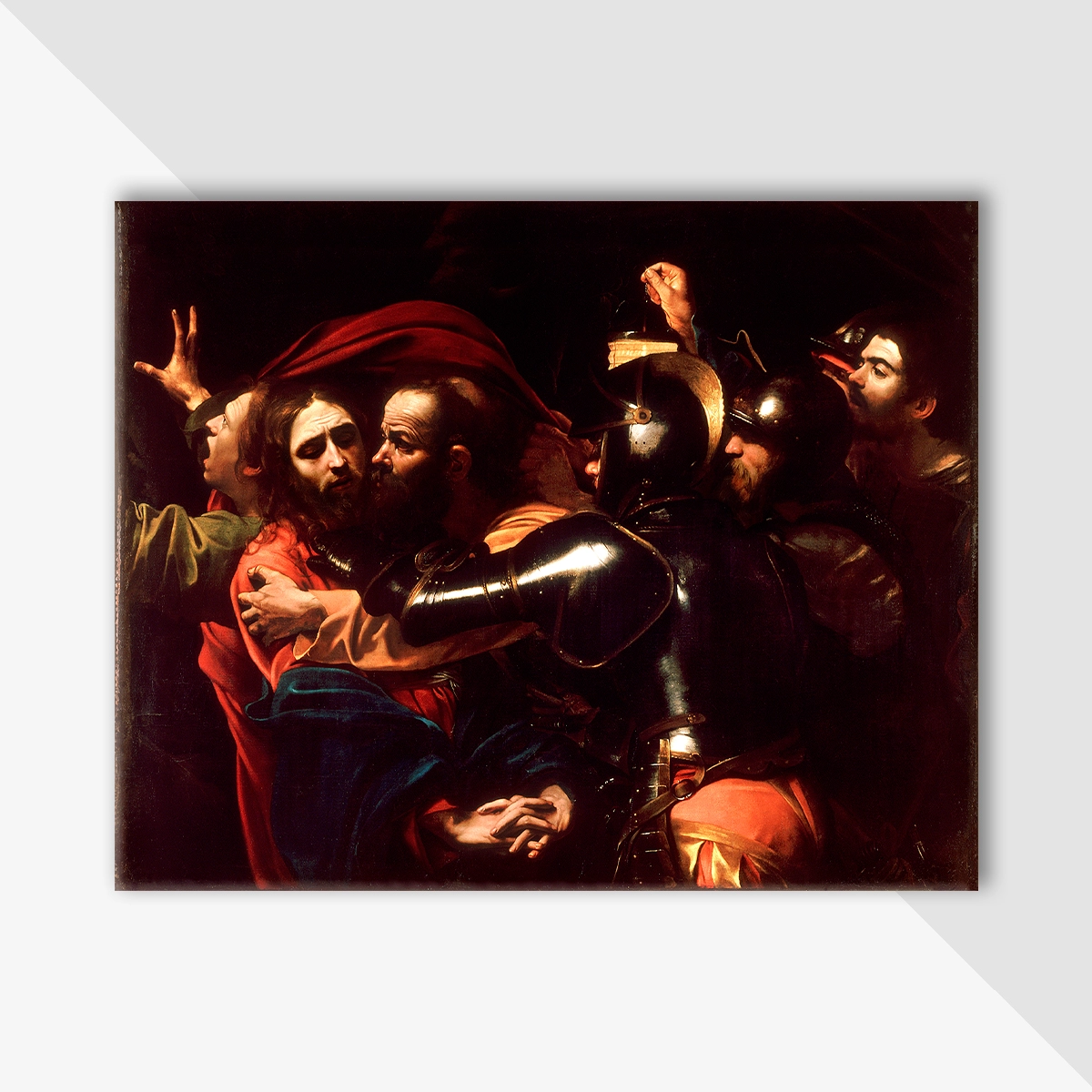 Our beautiful The Taking of Christ by Caravaggio stretched canvas makes fantastic gifts for all occasions. They are printed on a high-quality, vibrant canvas that produces brilliant results. Whether placed in a living room, a bedroom, or a nursery these long-lasting prints will be treasured for years to come. It is mounted onto a box frame. It is ready to hang straight from the box.