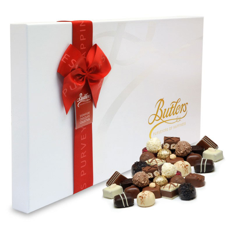 The Butlers 1kg assortment is stunningly presented in a handmade, rigid presentation box and handtied with a luxurious ribbon.