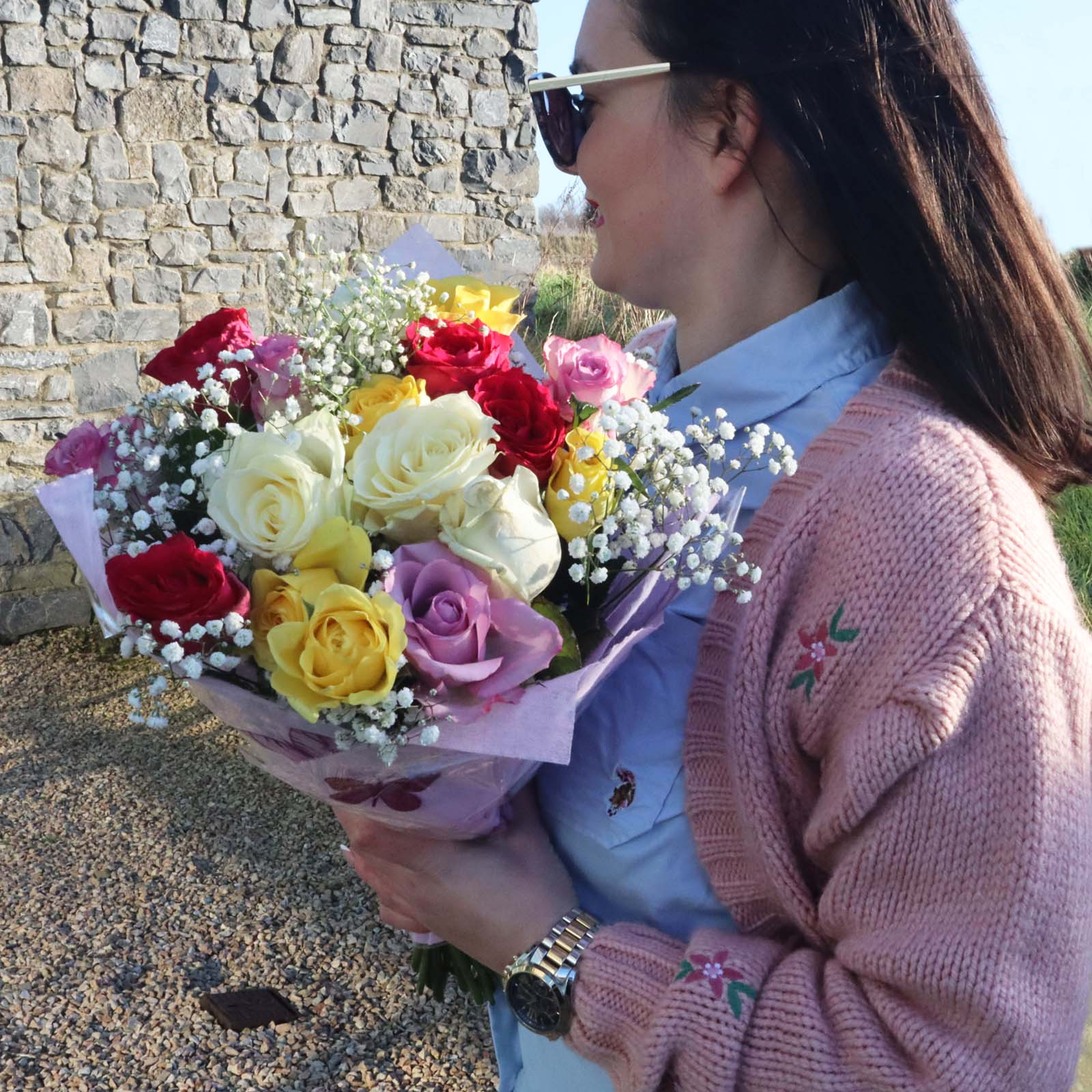Embrace the timeless allure of a vibrant rose bouquet, an eternal symbol of love and admiration. Our Parisian Mixed Roses Flower Bouquet is sure to captivate and cherish.