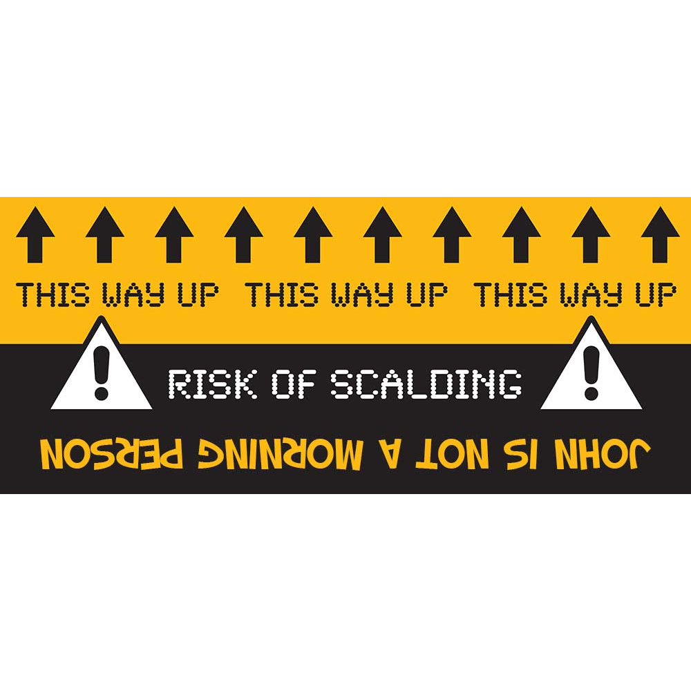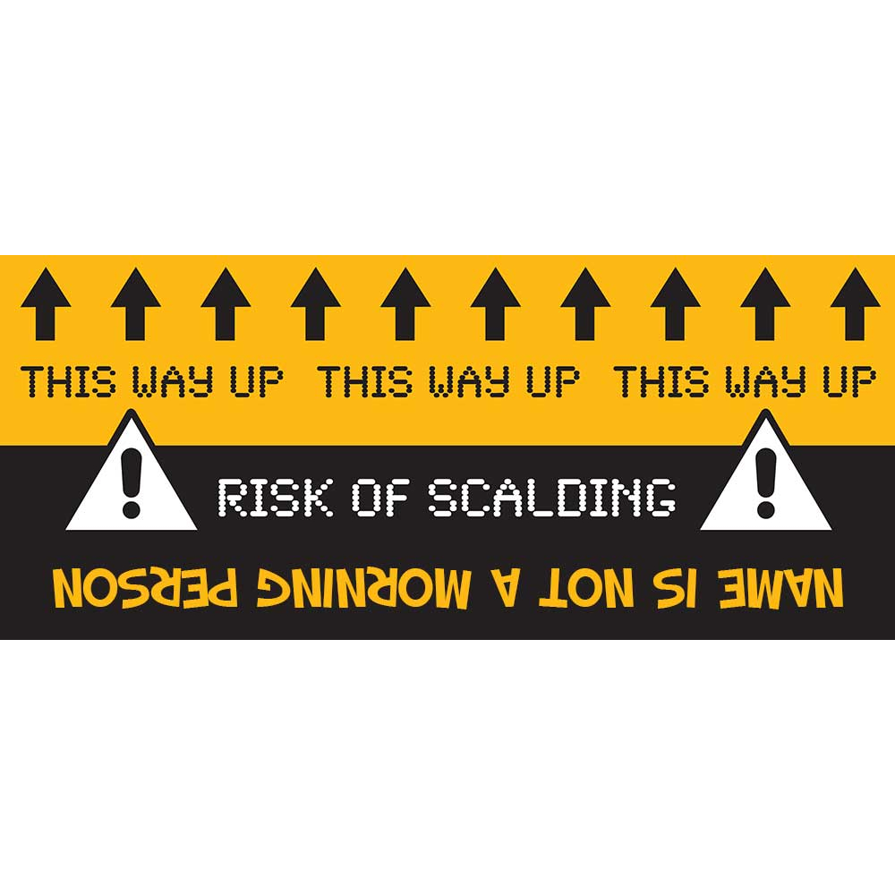 This mug is personalised with the recipient's name, i.e. "[NAME] IS NOT A MORNING PERSION".