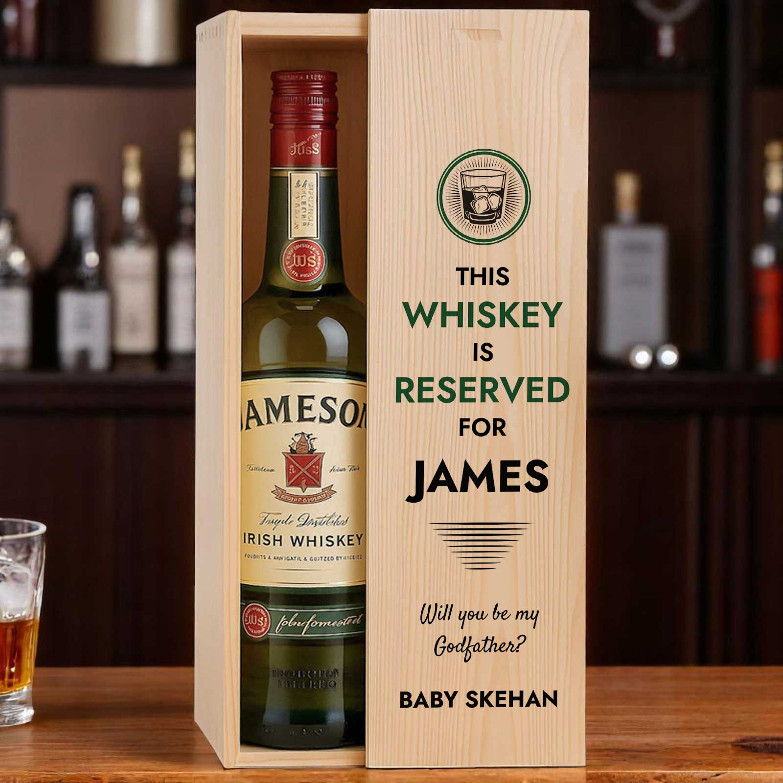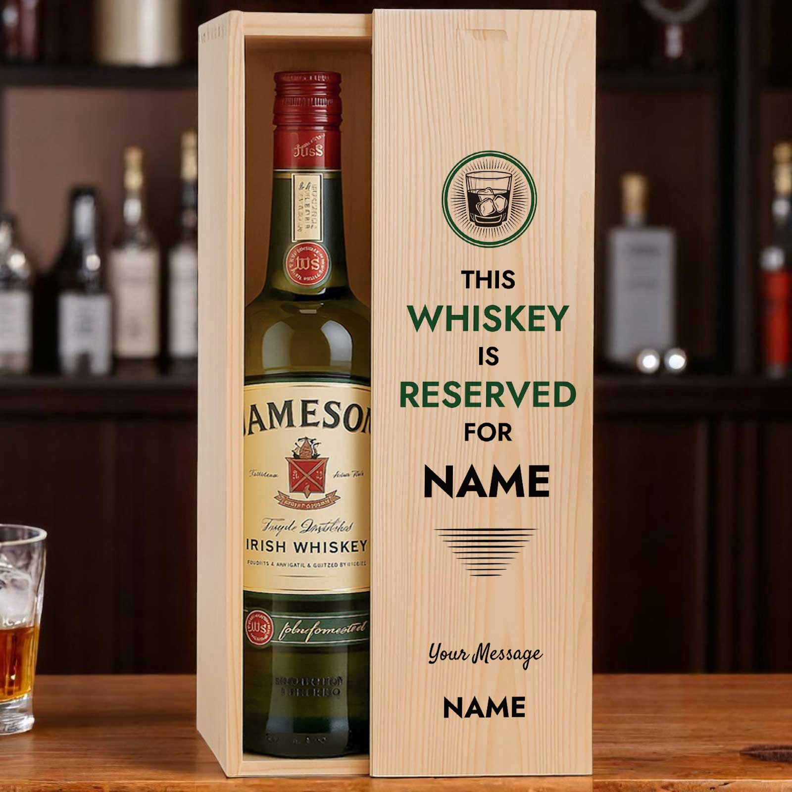 This personalised wooden box with a bottle of whiskey makes the perfect gift for any occasion.