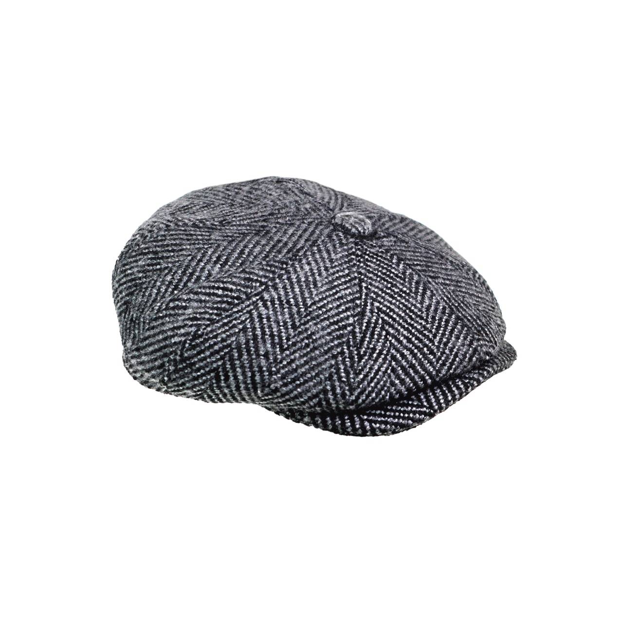 Newsboy Cap - Black Herringbone