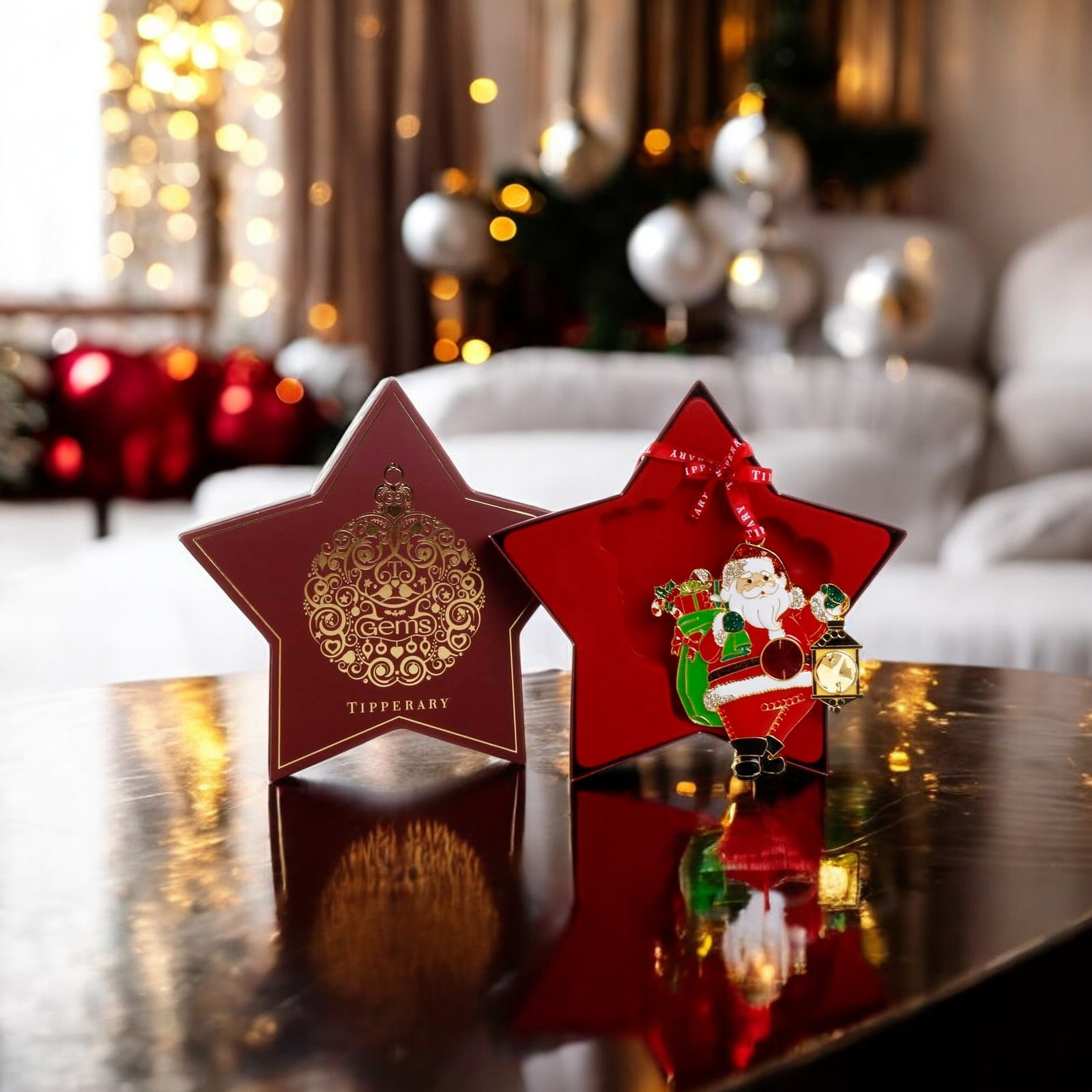 Each carefully designed Tipperary Decoration comes in a Star Shape Gift Box with Ribbon. Each decoration has a branded ribbon to hang.
