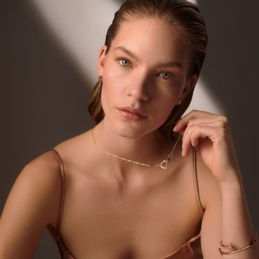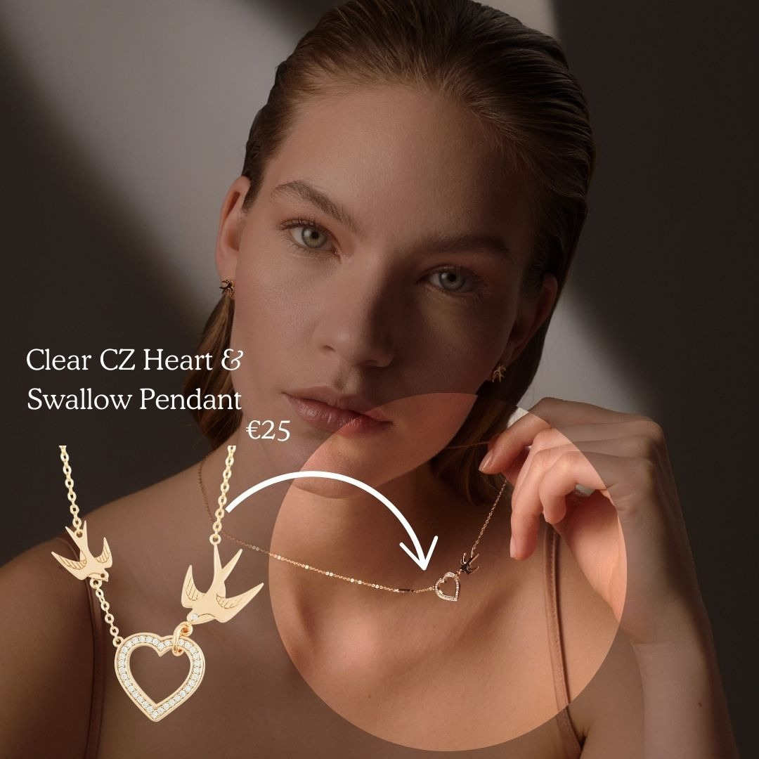 Featuring a delicate heart design adorned with two graceful swallows, this pendant represents love, freedom, and safe journeys. It adds a timeless touch to any outfit, making it a perfect accessory for both casual and special occasions.