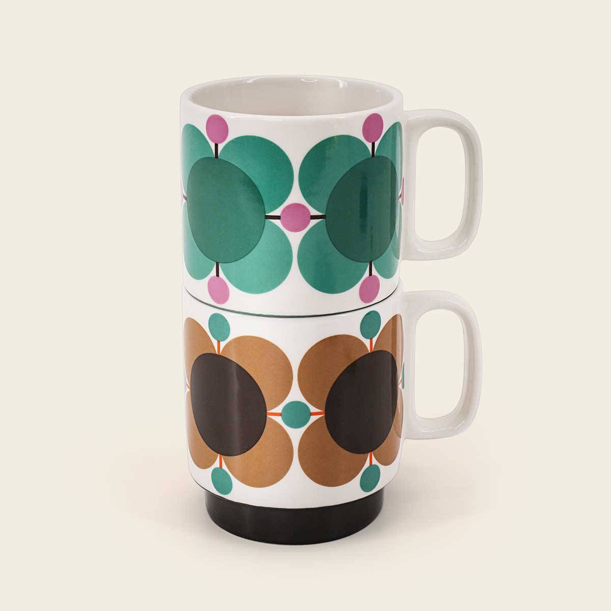 Orla Kiely Set of 2 Latte Mugs - Atomic Flower Jewel