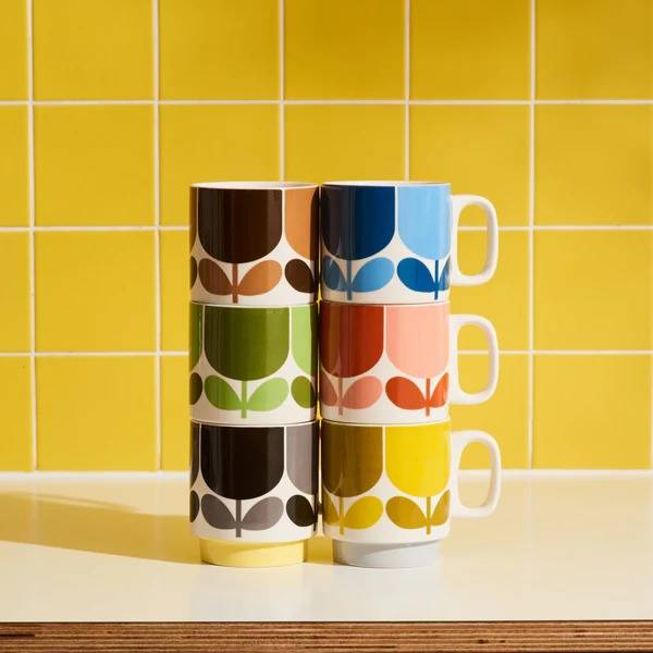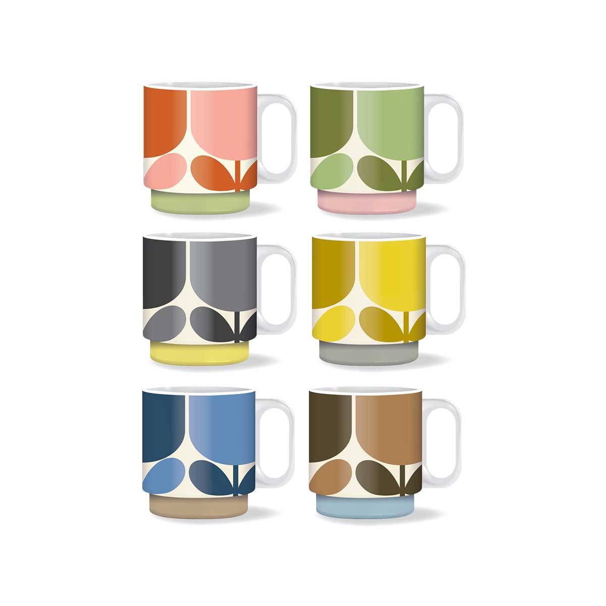 Orla Kiely Set of 6 Stackable Mugs - Block Flower