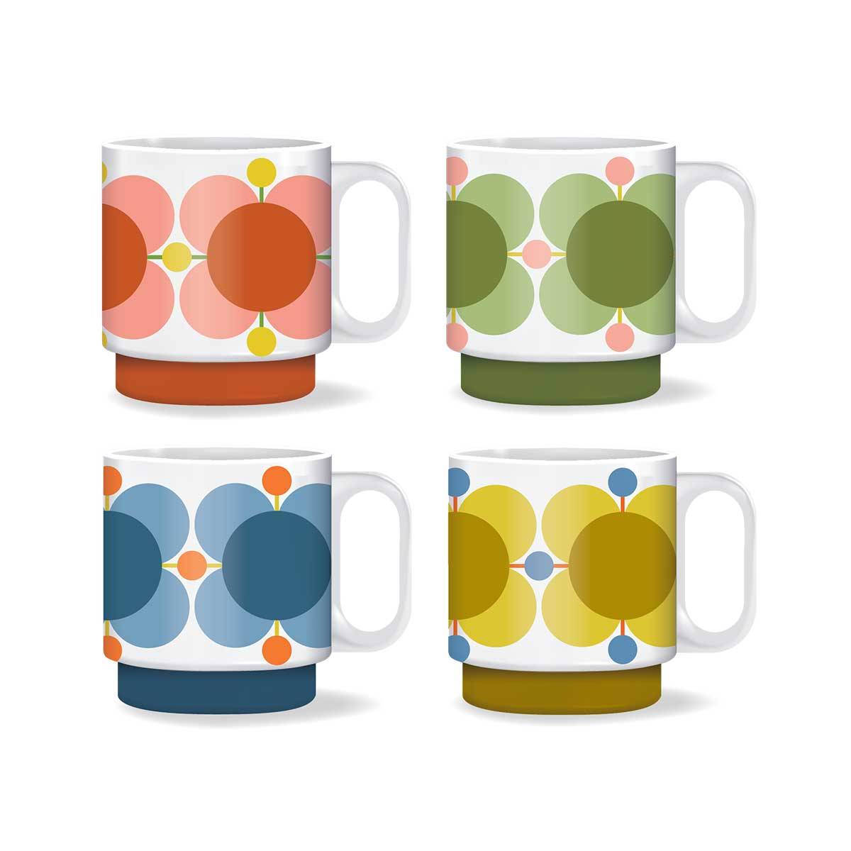Orla Kiely Set of 4 Stackable Mugs - Fifties Flower