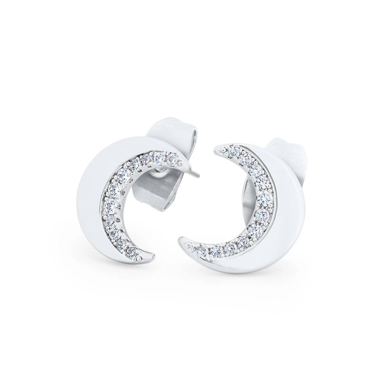 Half Moon Stud Silver Earrings