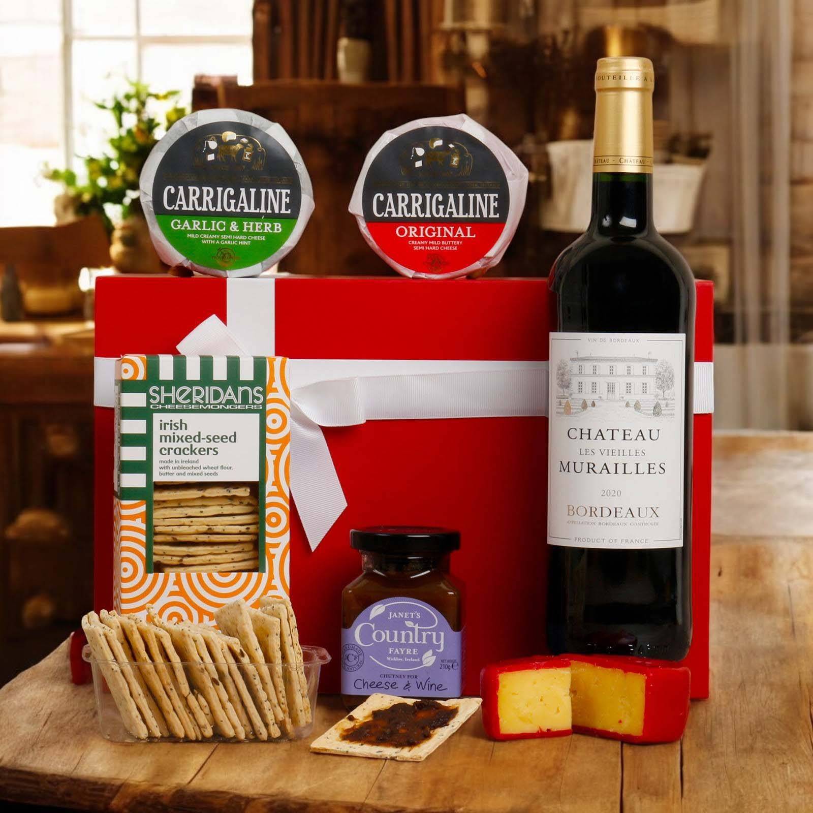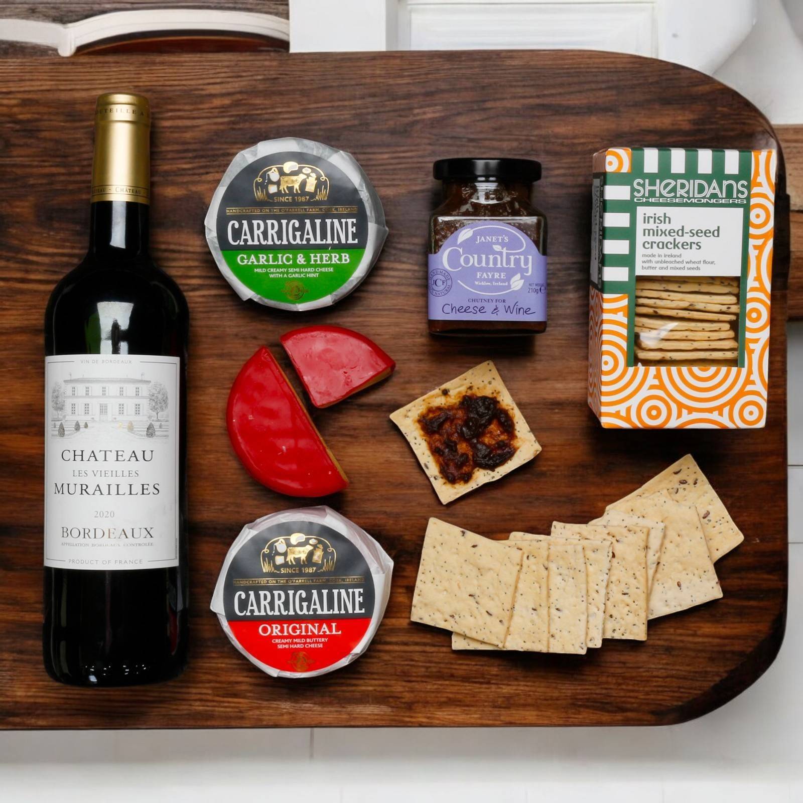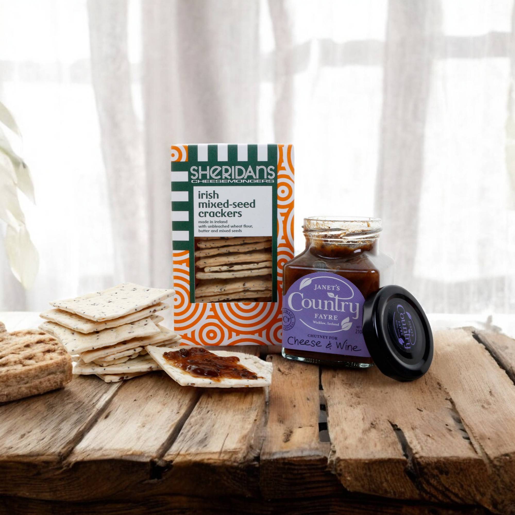 An elegant wine and cheese hamper, complimented by relish and the finest Irish Mixed Seed Cracker. Indulge someone with this classic combination.