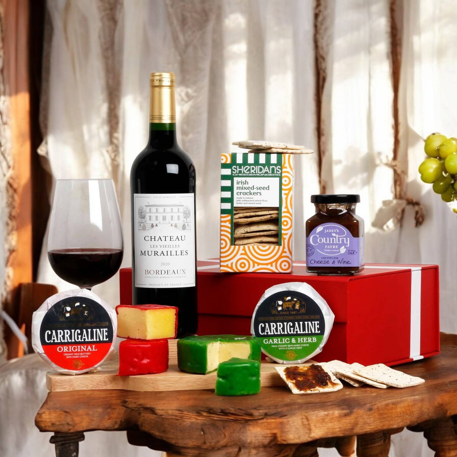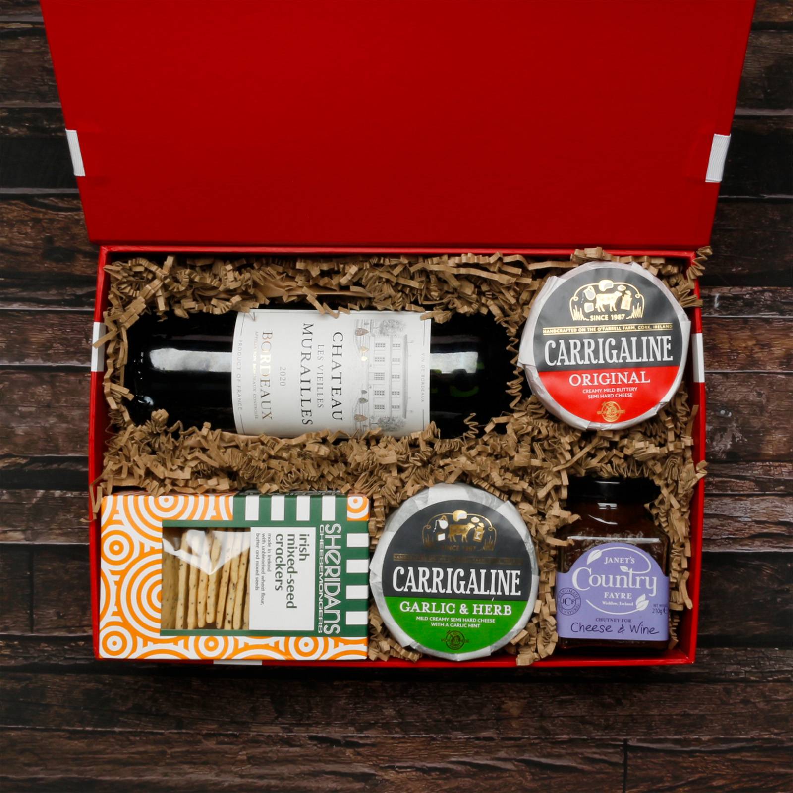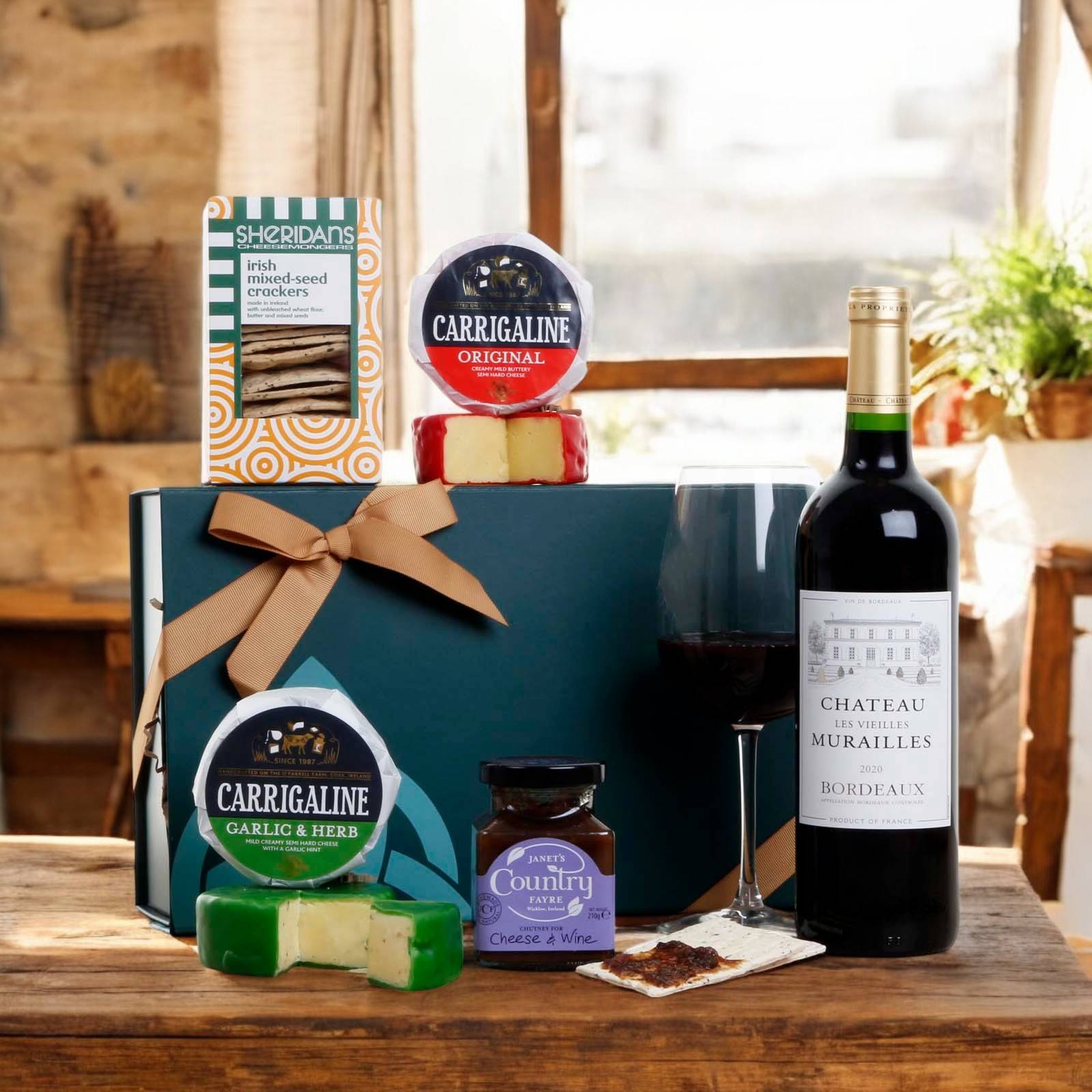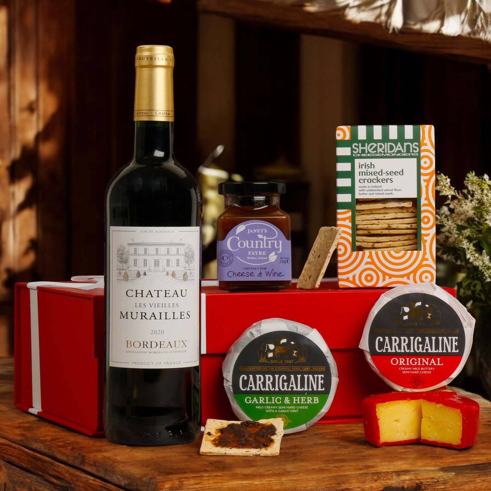 An elegant wine and cheese hamper, complimented by relish and the finest Irish Mixed Seed Cracker. Indulge someone with this classic combination.