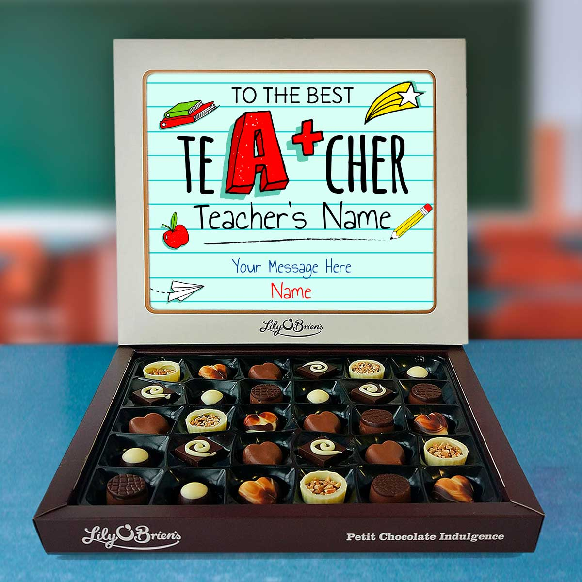 This Personalised Chocolate Box is filled with the Lily O'Brien's Luxury Chocolate collection. Approximate box dimensions: 290mm x 240mm x 40mm.