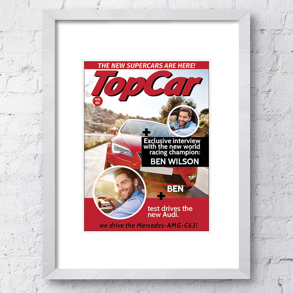 A truly novel gift, this personalised spoof magazine cover comes in a black or white wooden frame. The colourful cover is A3 size - to order, simply complete the personalised details and click add to cart.