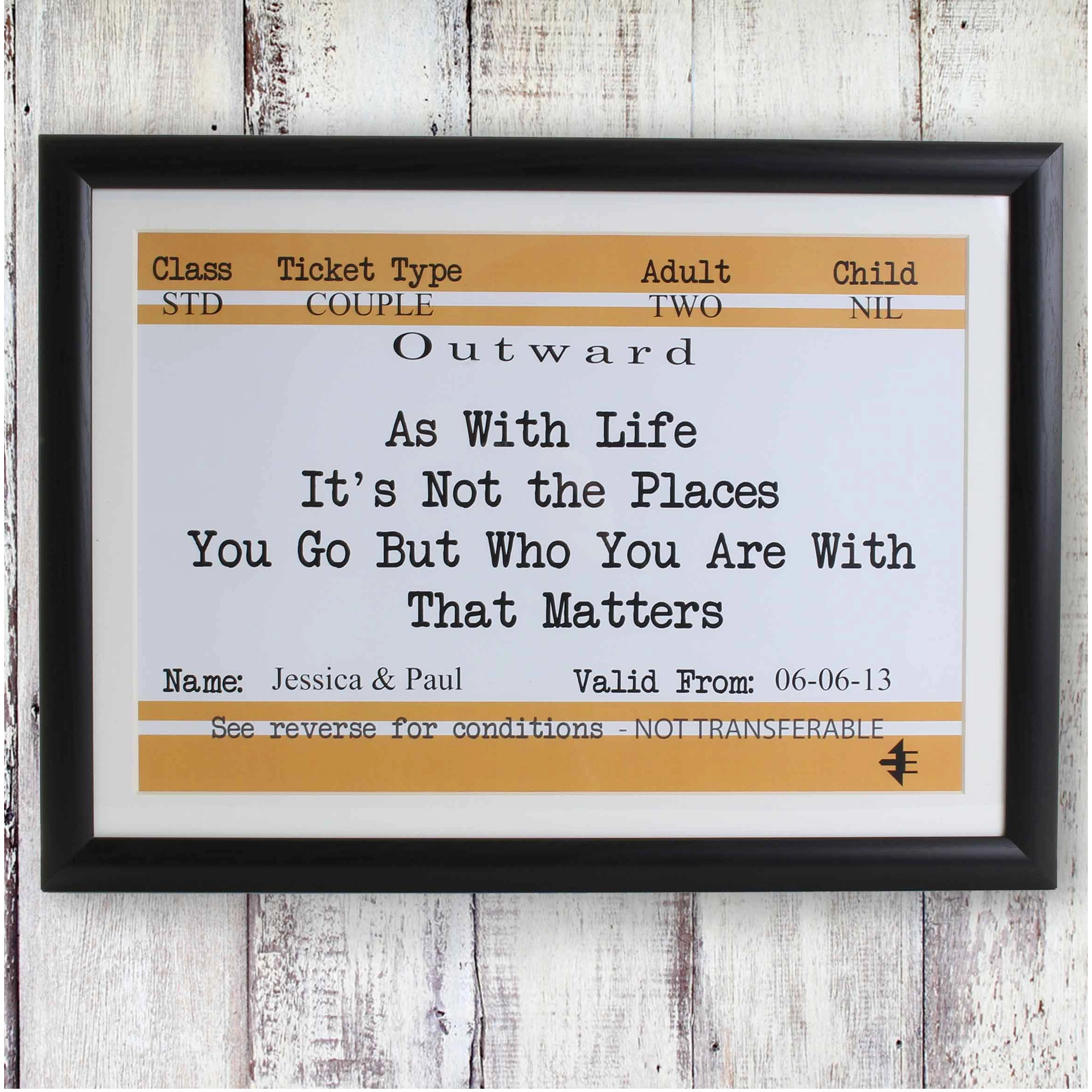 Celebrate your special bond with the "Train Ticket Not Places But People That Matter Forever" Personalised Framed Poster – a heartfelt and unique gift that captures the true essence of love and togetherness.
