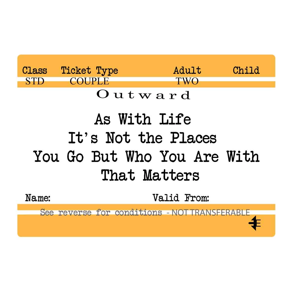 This charming A3-sized poster features a stylish, vintage-inspired train ticket design with the touching message: