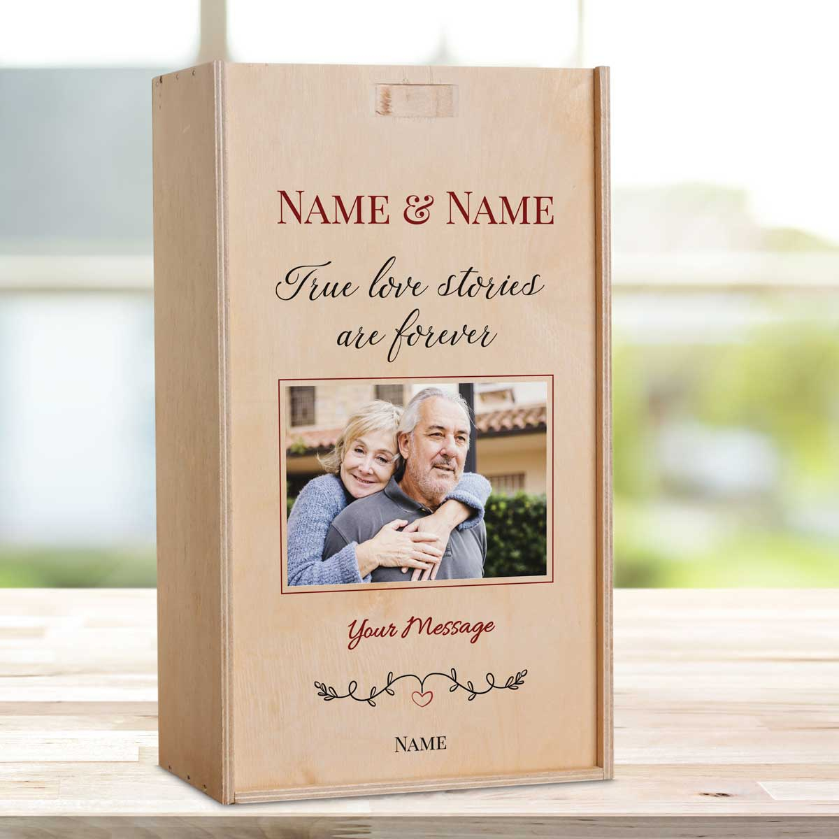 This personalised wine box with two bottles of wine makes the perfect gift for any romantic occasion.