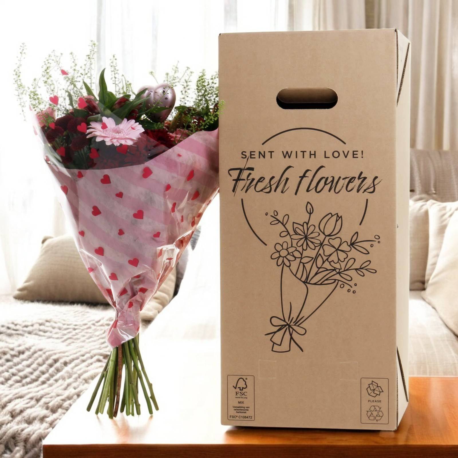 • Our fresh flower bouquets are packed and shipped direct from our Dublin warehouse together with any other gifts and cards ordered.