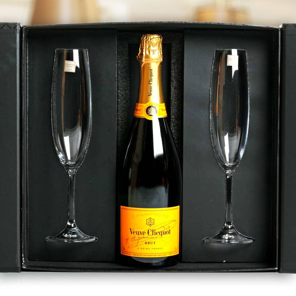 Veuve Clicquot Champagne in Crystal Flute Gift Box
