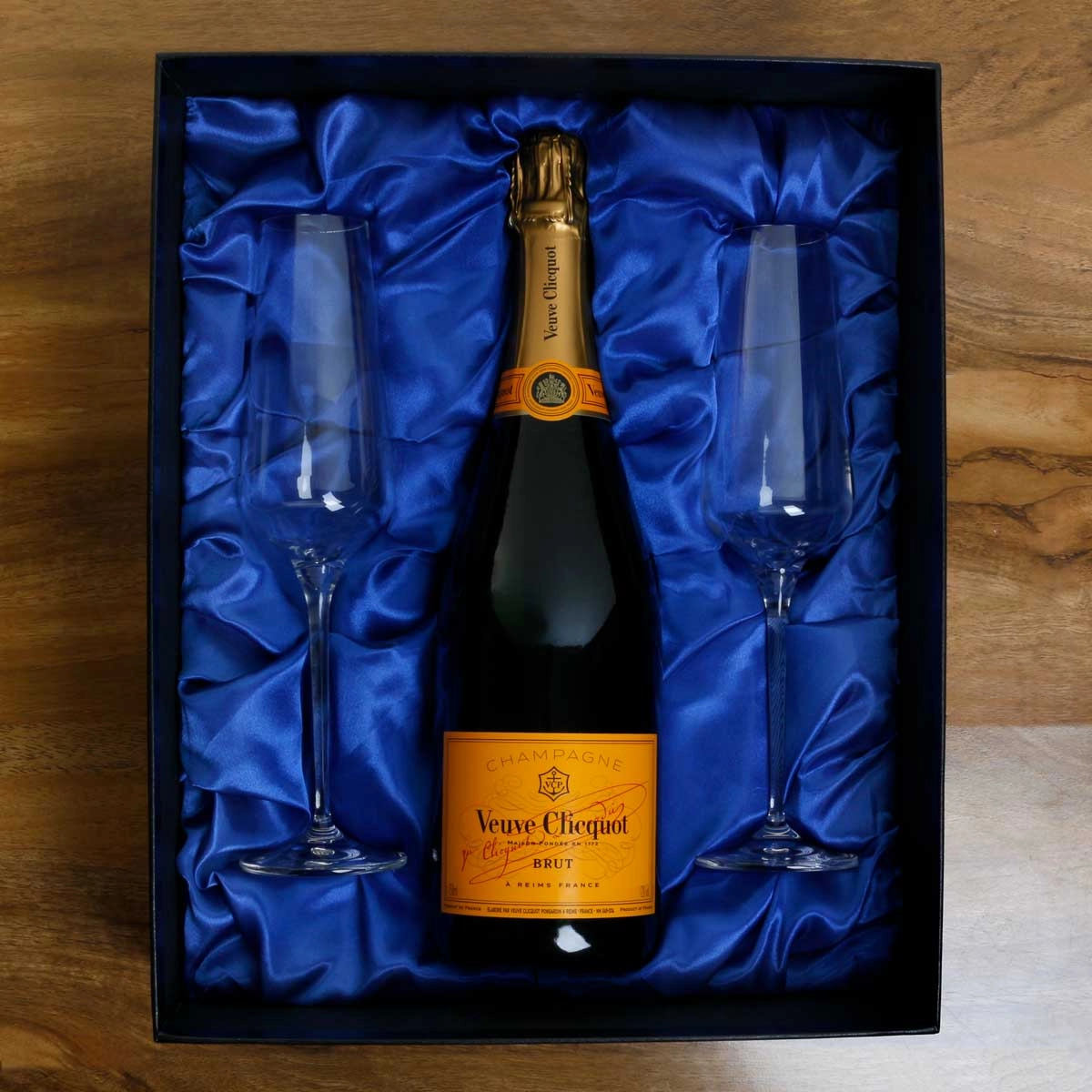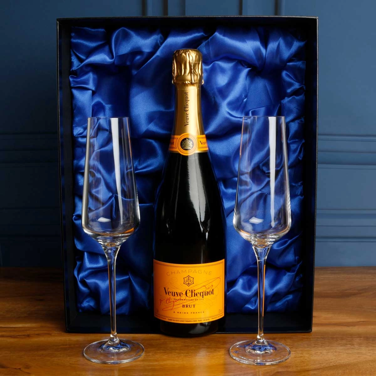 The comtemporary designed 180ml flutes along with the bottle of your choice are fitted into to the satin-lined rigid gift box - a great keepsake.