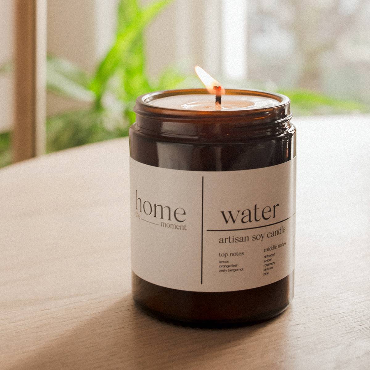 Water - Bergamot & Rosemary Fragranced 180ml Luxury Soy Wax Candle