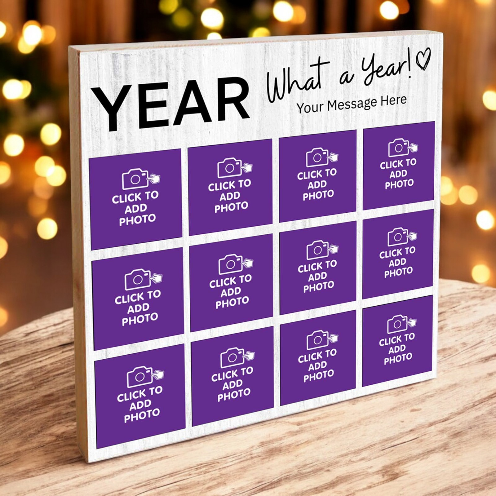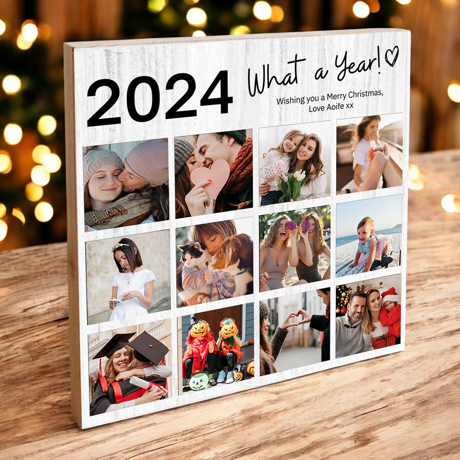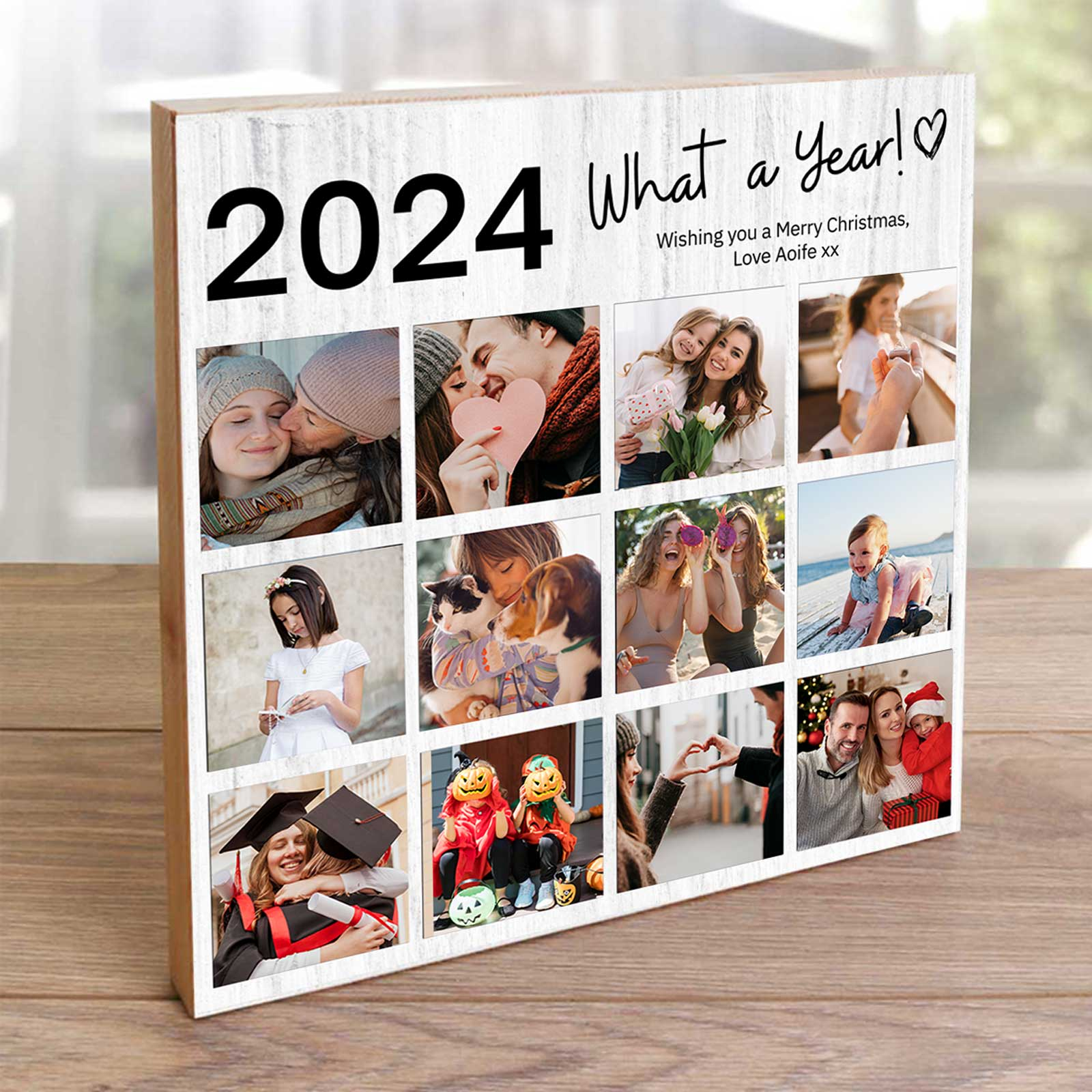 Celebrate your favourite moments with our What a Year wooden photo blocks! Upload up to 12 photos to create a stunning collage of memories. This personalised gift beautifully showcases your cherished moments, making it a perfect keepsake for any occasion. With a rustic wooden finish and high-quality printing, these blocks turn your memories into timeless decor pieces. Ideal for anniversaries, holidays, or simply to say, "What a year it's been!"Upload your photo and we will print this directly onto a smooth natural Scandinavian Solid Pine 25mm thick.