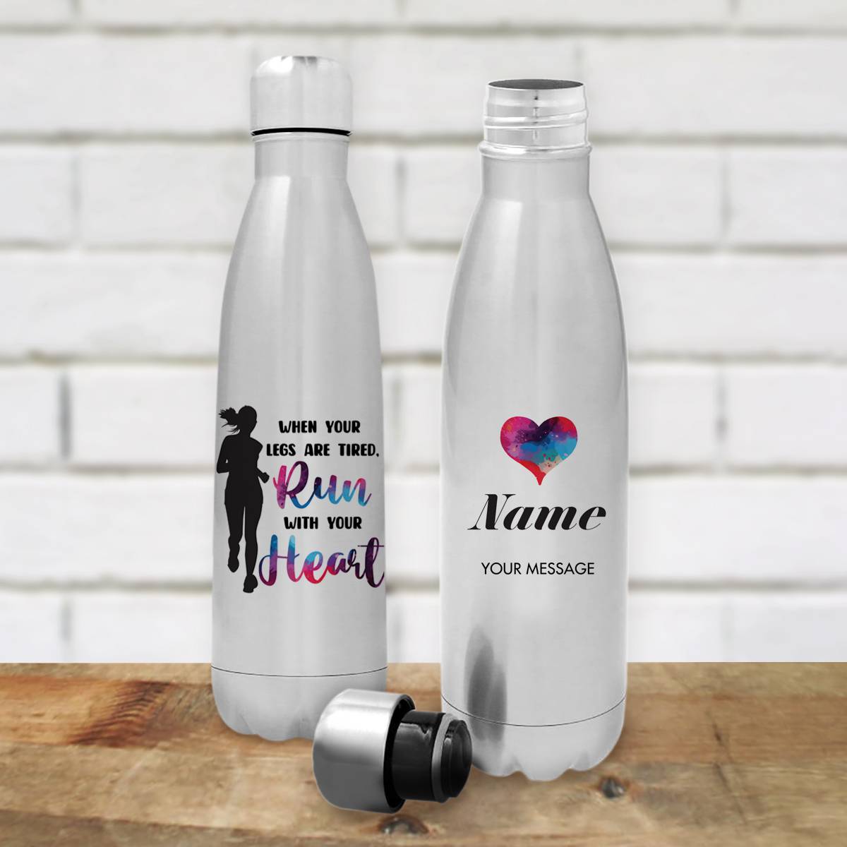This bottle is perfect for a Marathon Lover, a heartfelt gift for the dedicated runner in your life! This custom bottle or flask offers a unique blend of inspiration and functionality. With the option to personalize it with their name or a motivational message, this practical accessory becomes a daily reminder of strength, determination, and a passion for running. Whether they're rehydrating during a long race or staying energized on a daily jog, this bottle or flask stands by their side, inspiring them to run with their heart, even when their legs are tired. It's the ideal gift for those who find their motivation in every step they take.