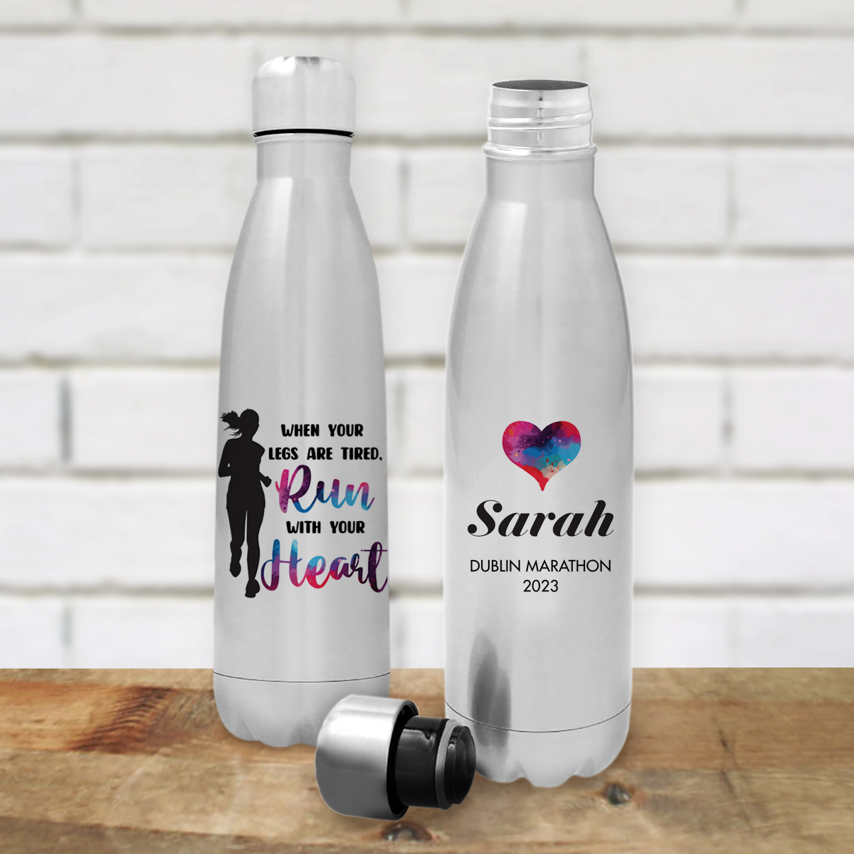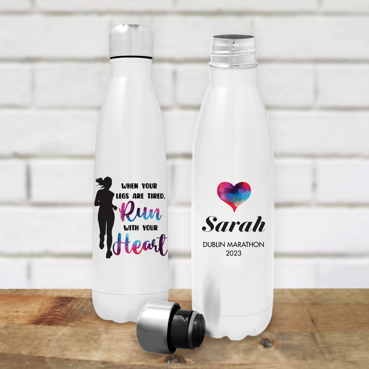 This bottle is perfect for a Marathon Lover, a heartfelt gift for the dedicated runner in your life! This custom bottle or flask offers a unique blend of inspiration and functionality. With the option to personalize it with their name or a motivational message, this practical accessory becomes a daily reminder of strength, determination, and a passion for running. Whether they're rehydrating during a long race or staying energized on a daily jog, this bottle or flask stands by their side, inspiring them to run with their heart, even when their legs are tired. It's the ideal gift for those who find their motivation in every step they take.