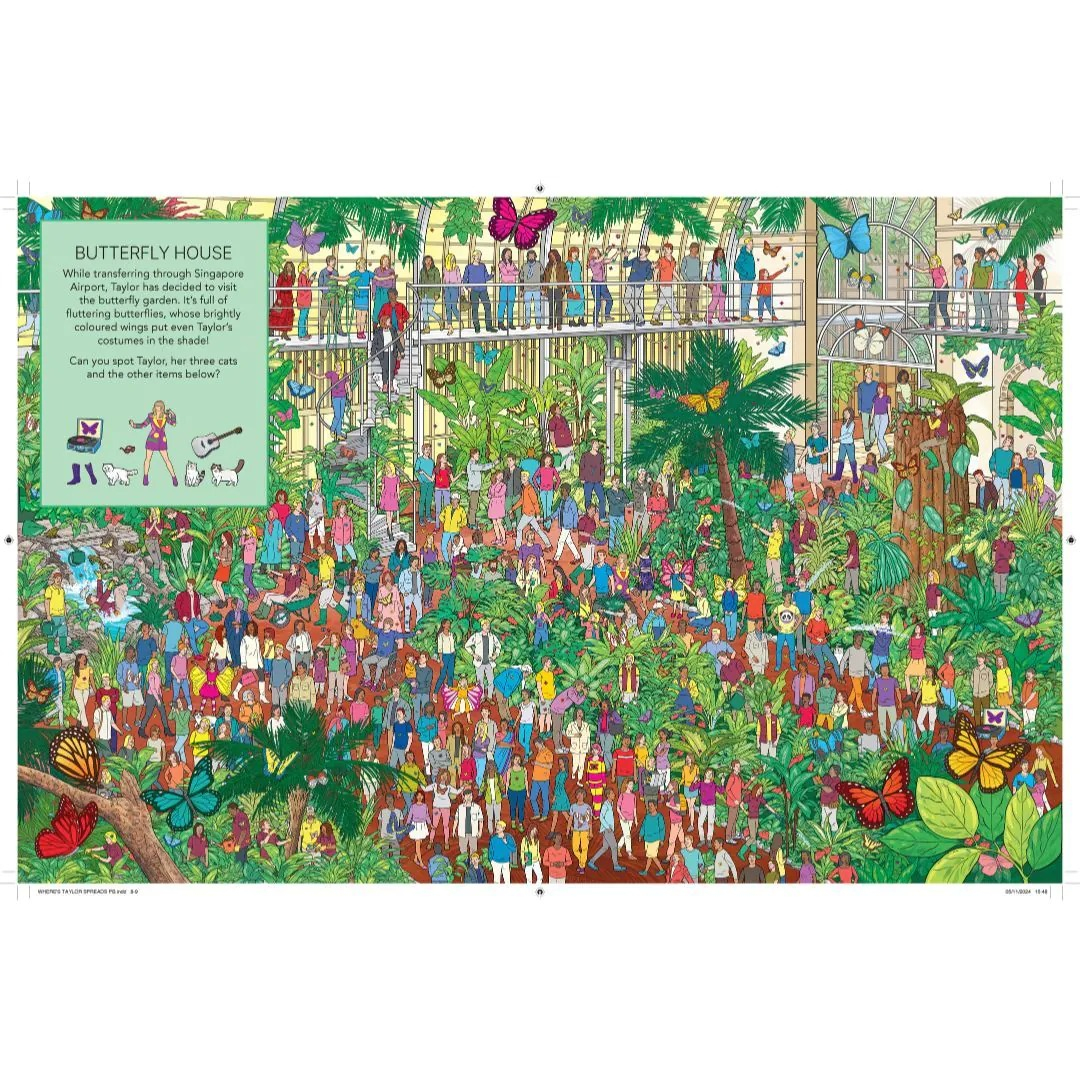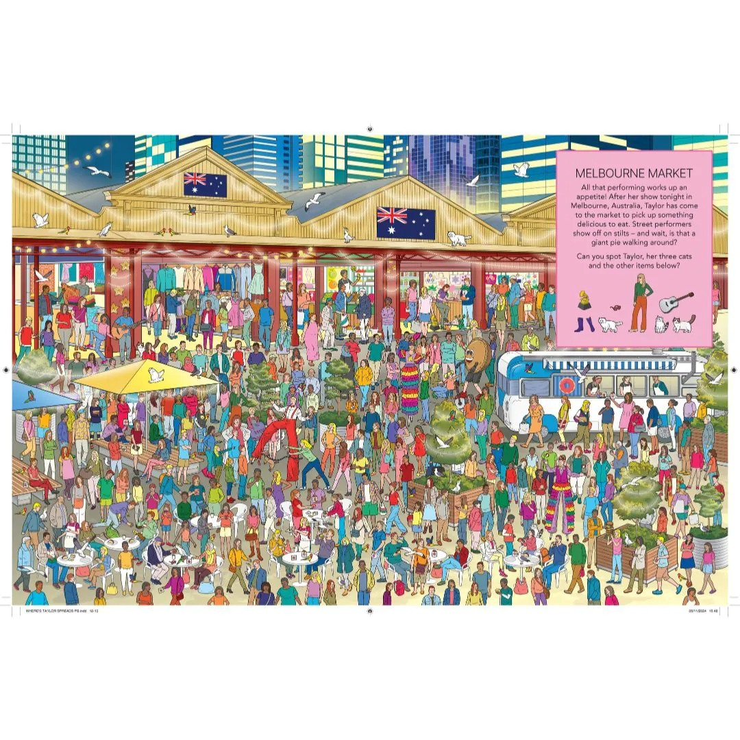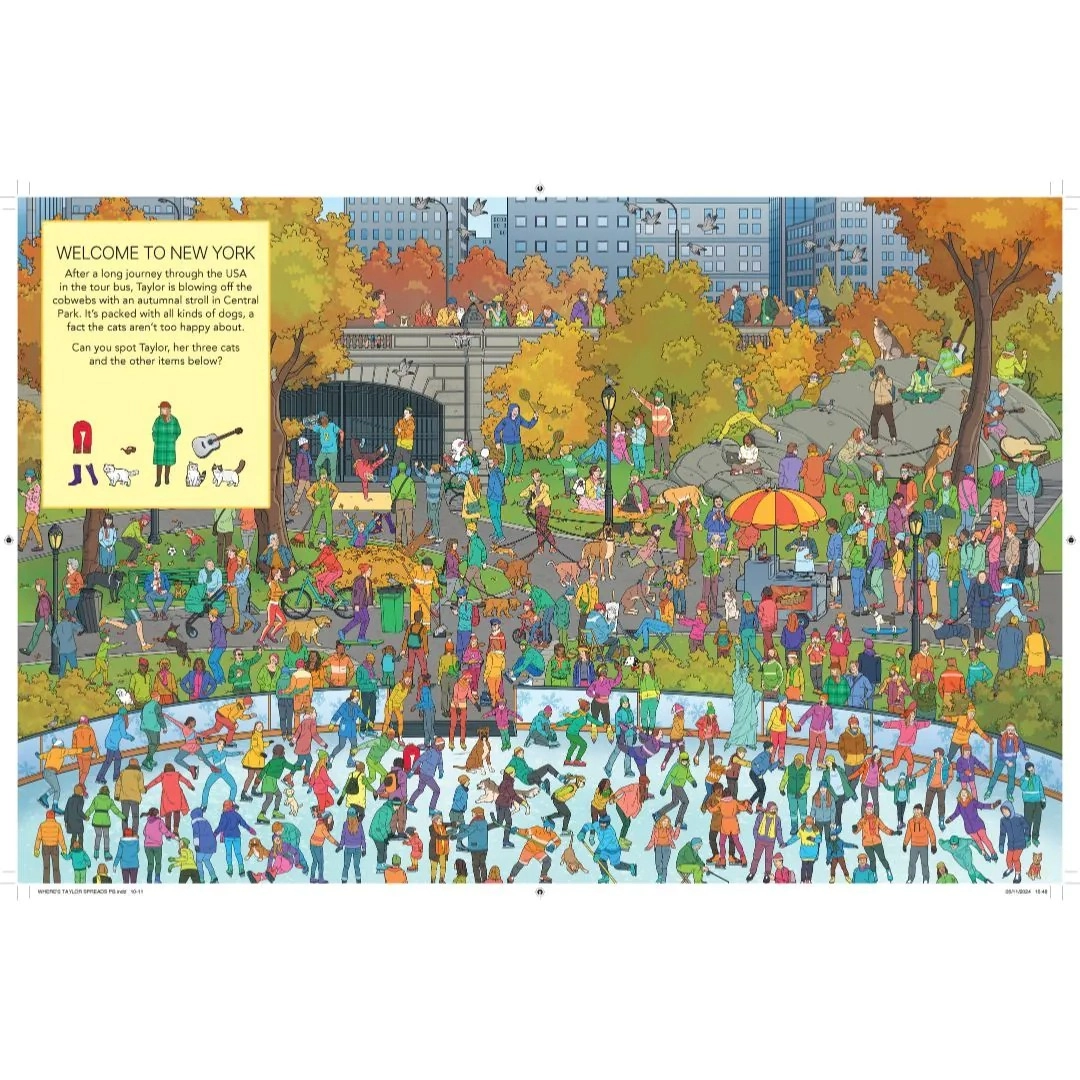 Where’s Taylor? A Superstar Search and Find Adventure! Taylor is taking the world by storm in this glittering, globetrotting search and find book – a must-have for every Swiftie! Join the fun as you embark on an exciting hidden object game, following Taylor through 17 sensational locations inspired by her incredible journey. From dazzling Eras Tour stadiums to a lively Nashville rodeo, a cozy café, and even a pet shop where she’s picking out toys for her beloved cats, each scene is packed with intricate details and fun surprises. Can you spot Taylor, her iconic outfits, and other special hidden items along the way? With vibrant illustrations and endless discoveries, this superstar search adventure is the perfect gift for Taylor Swift fans of all ages. Get ready to test your observation skills and celebrate the magic of Taylor Swift in this ultimate search and find book!