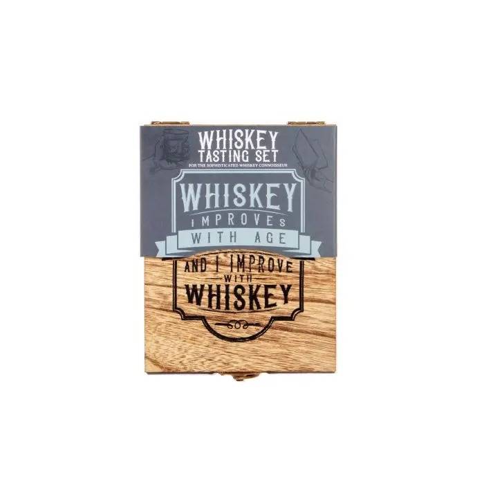 Whiskey improves with age…and so do you! Celebrate aging with this gorgeous Whiskey Tasting Set! This gorgeous whiskey lowball glass is encased within a premium wooden box, with the fun printed sentiment 'Whiskey Improves With Age, and I Improve With Whiskey'!