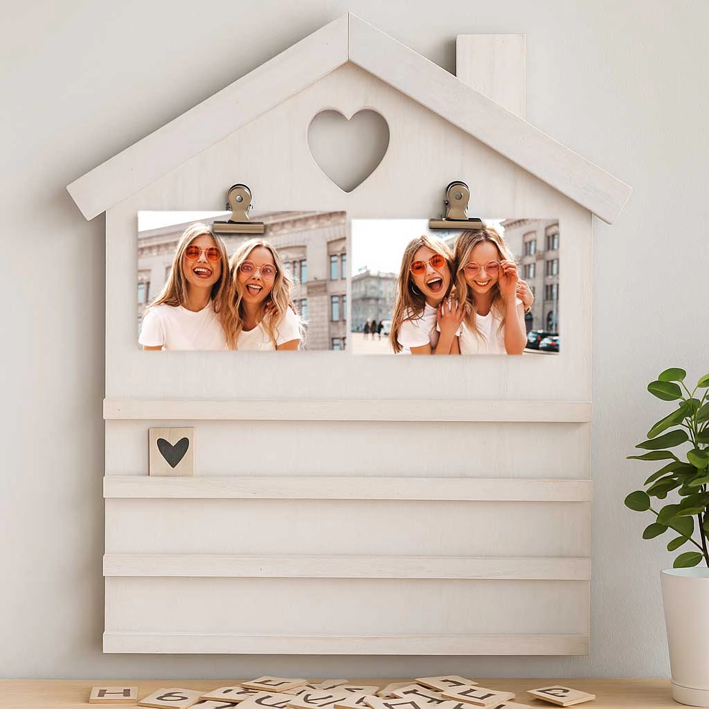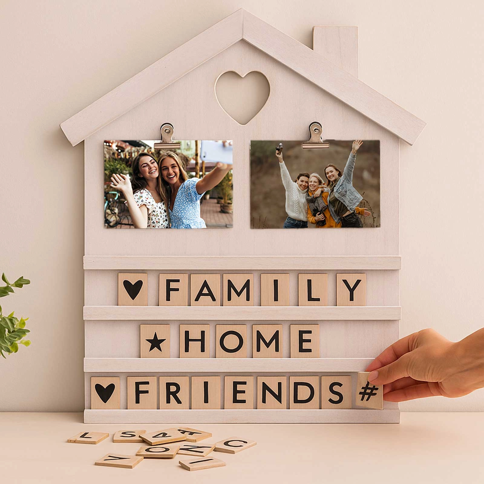 Bring warmth and personality into any home with our Personalised White Deco House Photo & Letter Board.