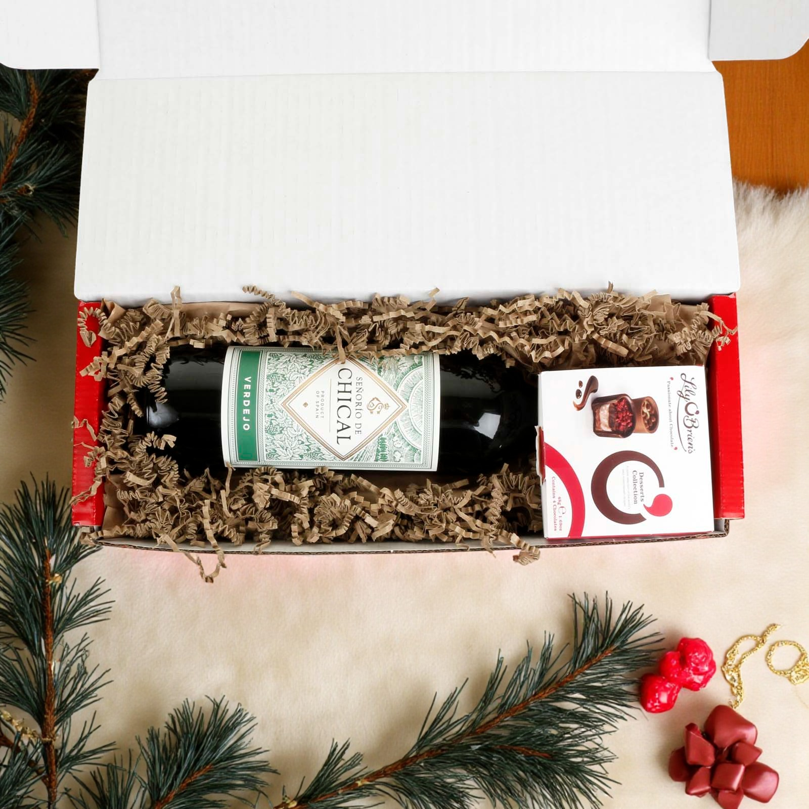 Introducing the Spanish Verdejo White Wine and Irish Chocolate Gift Hamper: