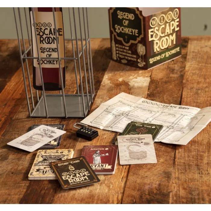 Complete with a metal wine cage, 4 digit combination padlock, 54 escape room cards and a score sheet, this novelty, wine-themed twist on a traditional escape room game is perfect for puzzle lovers and wine drinkers alike.
