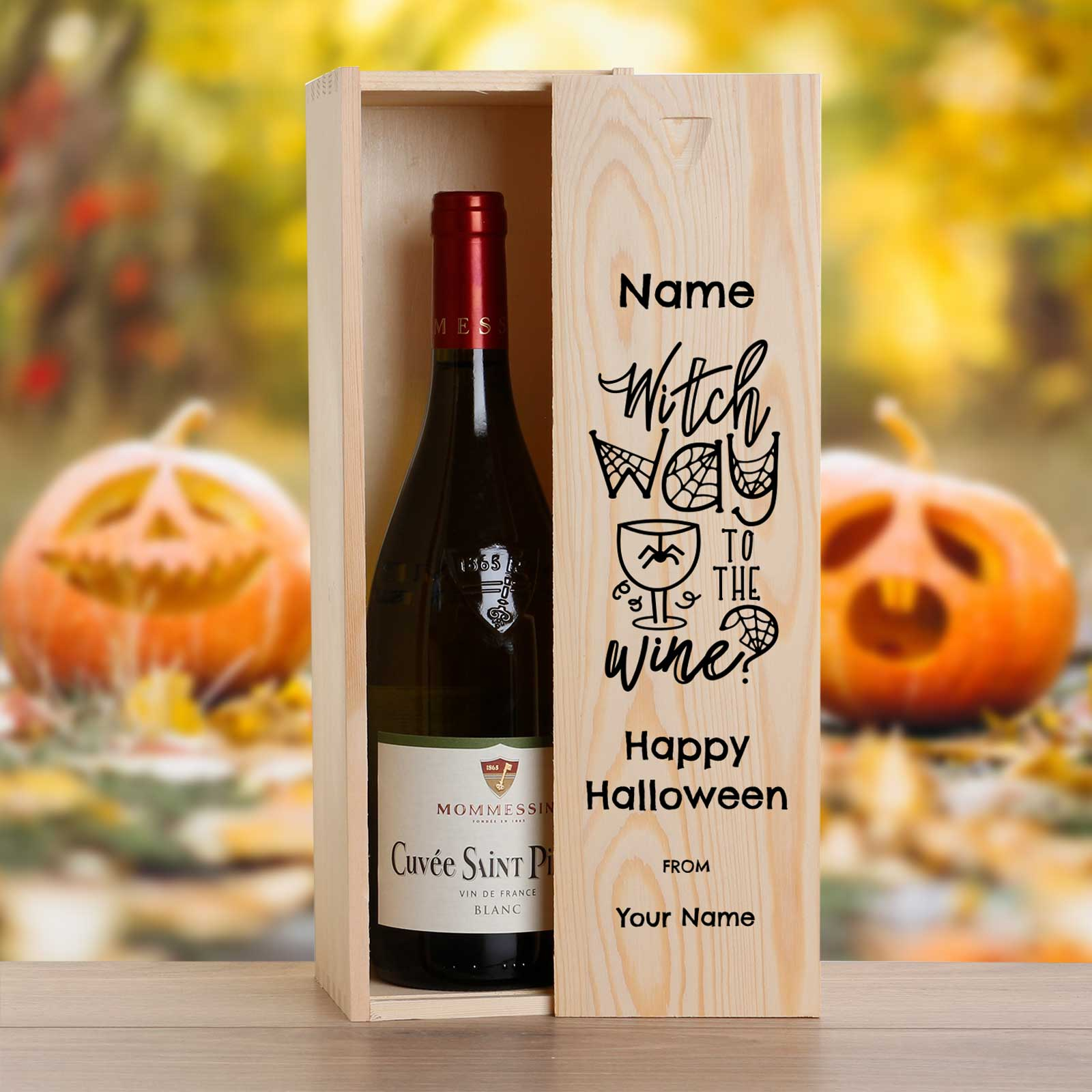 This personalised wine box with a bottle of wine makes the perfect gift for halloween.