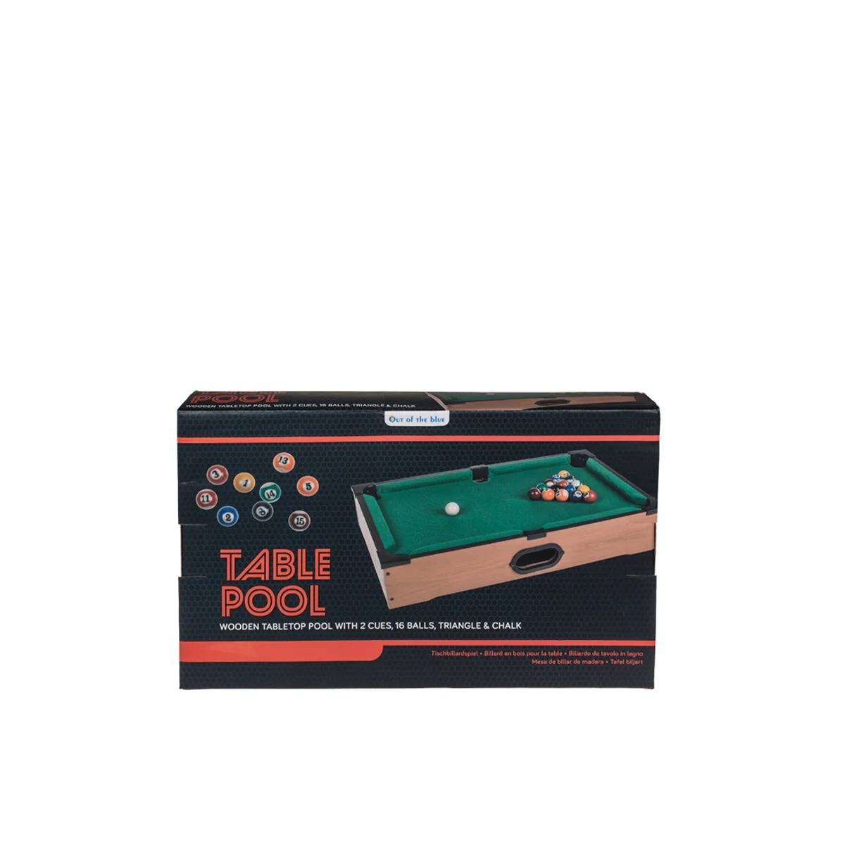 Contents: 1 x Pool Table, 2 cues, 16 balls, 1 chalk, 1 triangle