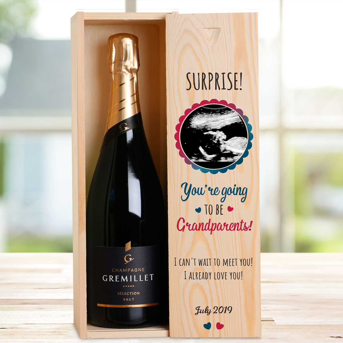This personalised wooden box with a bottle of Champagne makes the perfect gift and a wonderfaul way to surprise new grandparents!